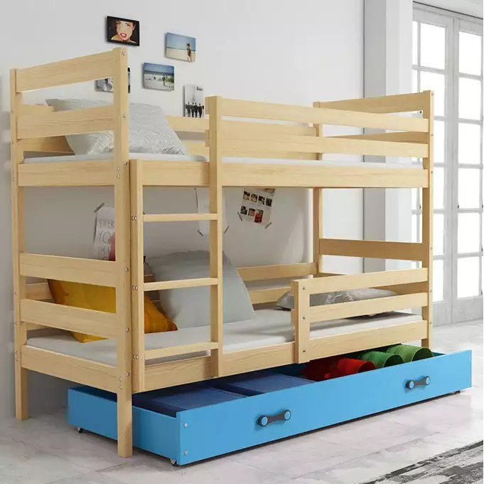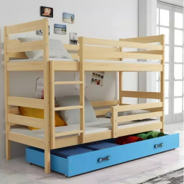 ERYK PIĘTROWE RAMA SOSNA SZUFLADA NIEBIESKI BEZ MATERACY 80 X 190 KPL