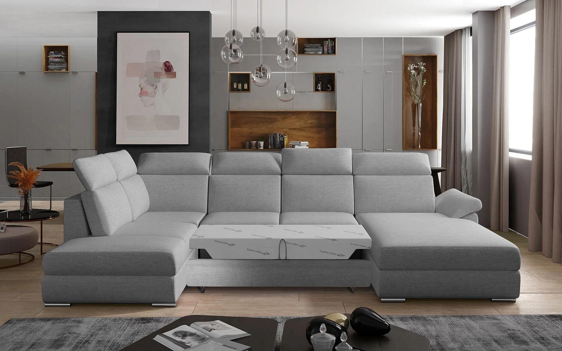 Objevte dokonalou kombinaci elegance, pohodlí a praktičnosti s naší sedací soupravou ve tvaru U EVANELL v elegantním provedení. Tato sedací souprava je navržena tak, aby se stala středobodem vašeho obývacího pokoje a poskytla vám maximální komfort a funkčnost.