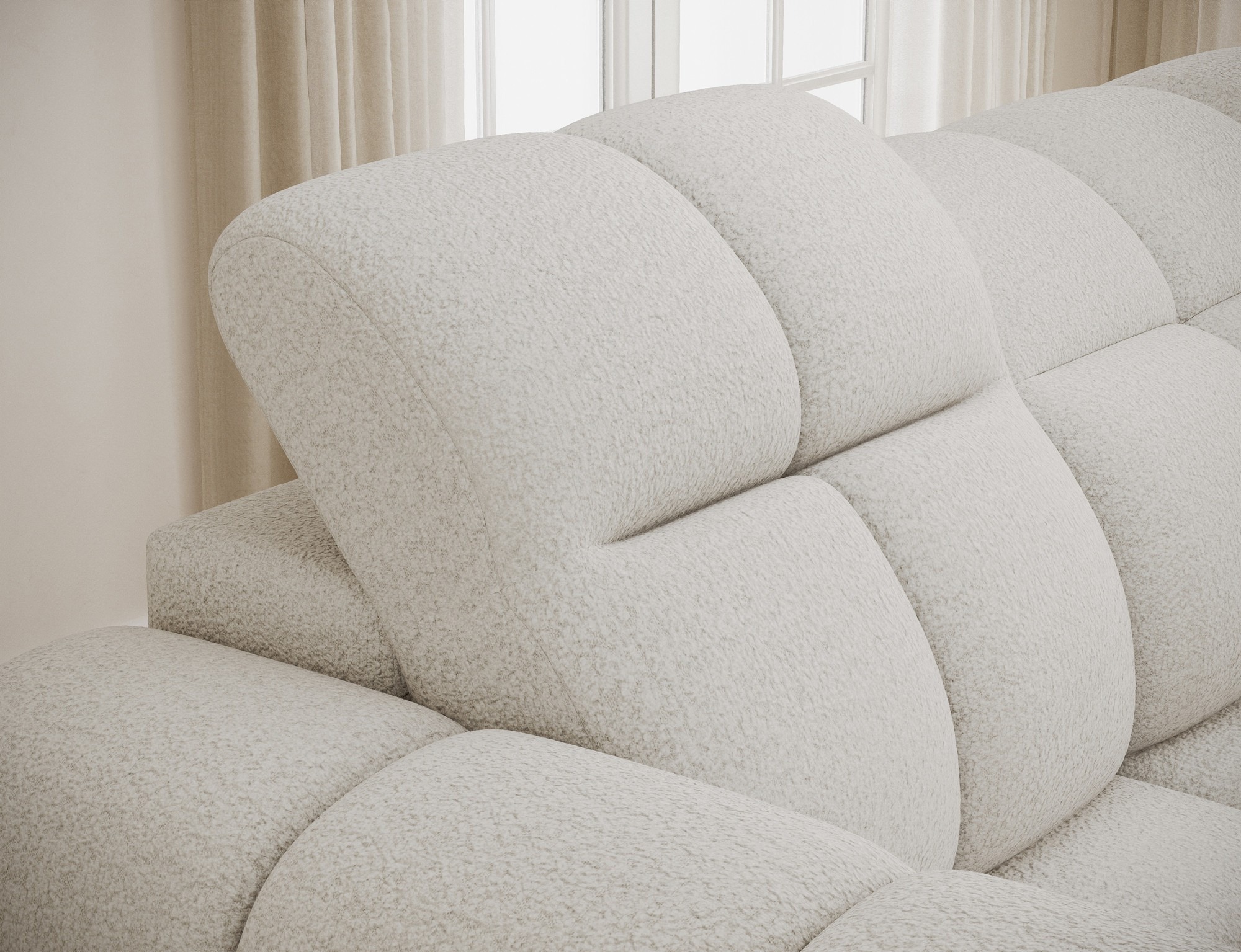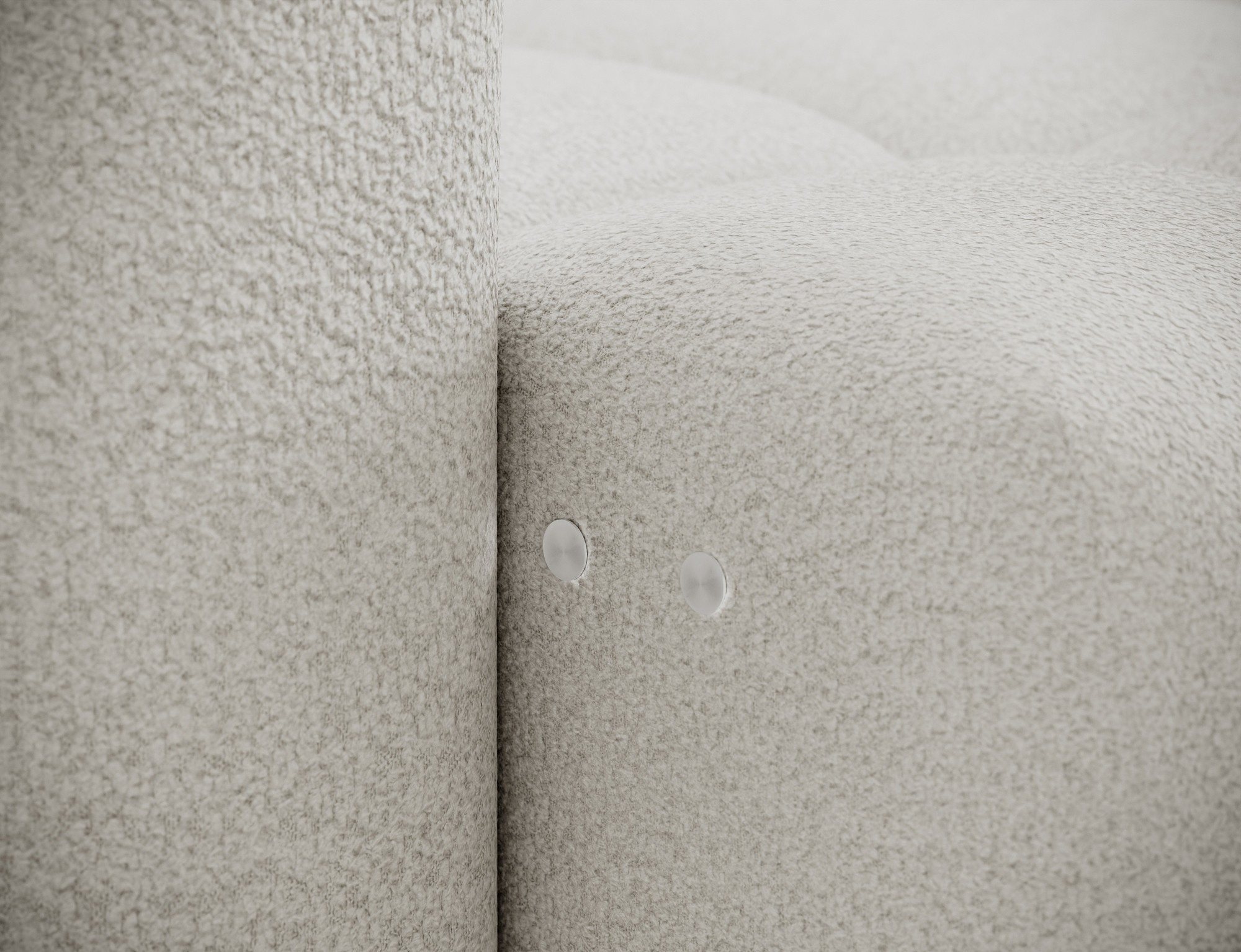 Rohová pohovka Fanito je moderní, prostorná sedací souprava ve tvaru L navržená pro obývací pokoj, která se vyznačuje svým pevným, zaobleným siluetou, hlubokým sedákem a segmentovaným prošíváním, jež zdůrazňuje její designový, ale zároveň útulný charakter—ideální pro relaxační zónu domova. Model měří 288 × 200 × 105 cm a váží 130.6 kg, zajišťující stabilitu a každodenní pohodlí. Výplň sedadla kombinuje vlnové pružiny typu B, vysoce odolnou pěnu HR3030 a 150 g/m² prošívanou výplň, což zajišťuje pružnost, pohodlí a odolnost proti prohýbání, zatímco opěradlo je vyztuženo čalounickými popruhy a profilovanou polyuretanovou pěnou T2316 pro ergonomickou oporu zad. Jako rozkládací pohovka nabízí praktickou spací plochu o rozměrech 85 × 232 × 47 cm a elektrické prodloužení sedadla (aktuátor) o 28 cm vám umožní rychle a bez námahy zvětšit plochu pro odpočinek. Navíc mechanismus opěrky hlavy s vratnou pružinou umožňuje pohodlné nastavení podpory hlavy, což činí rohovou pohovku Fanito vynikající volbou pro každého, kdo hledá pohodlnou rozkládací sedací soupravu, která spojuje styl, funkčnost a vysokou kvalitu zpracování.