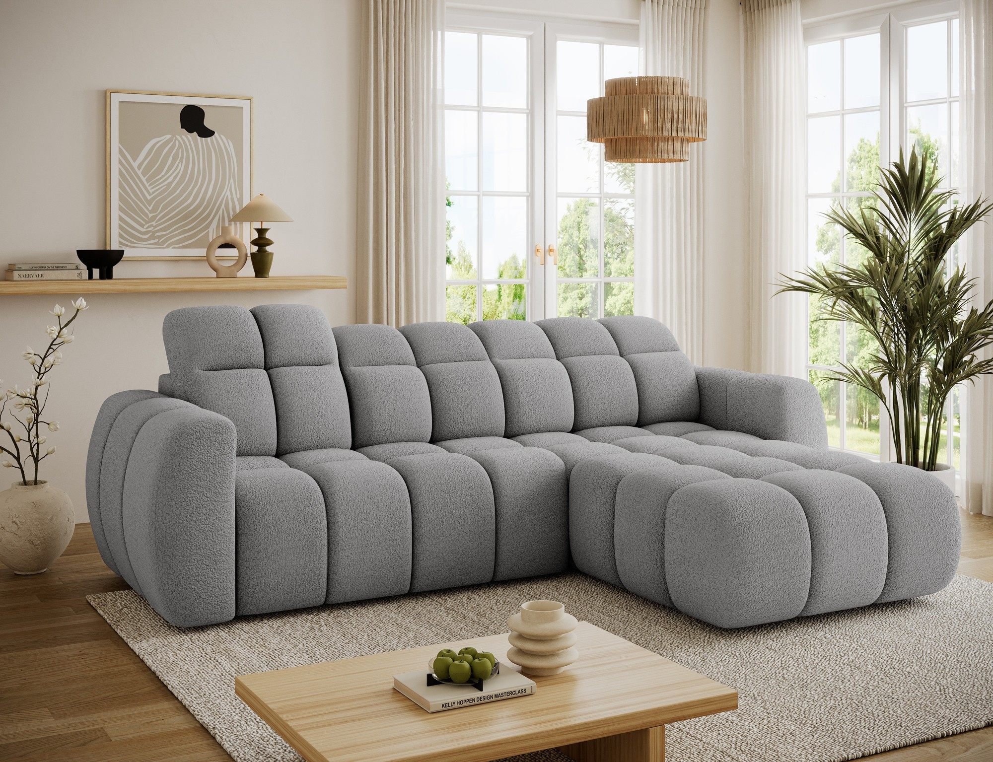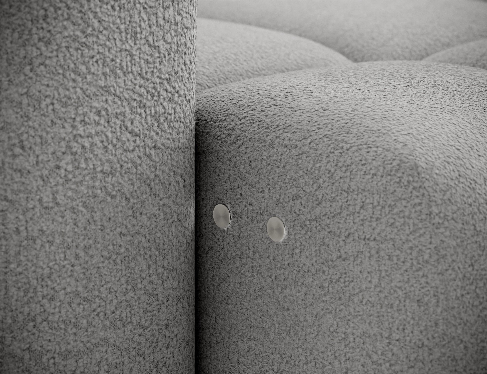 Rohová pohovka Fanito je moderní, prostorná sedací souprava ve tvaru L navržená pro obývací pokoj, která se vyznačuje svým pevným, zaobleným siluetou, hlubokým sedákem a segmentovaným prošíváním, jež zdůrazňuje její designový, ale zároveň útulný charakter—ideální pro relaxační zónu domova. Model měří 288 × 200 × 105 cm a váží 130.6 kg, zajišťující stabilitu a každodenní pohodlí. Výplň sedadla kombinuje vlnové pružiny typu B, vysoce odolnou pěnu HR3030 a 150 g/m² prošívanou výplň, což zajišťuje pružnost, pohodlí a odolnost proti prohýbání, zatímco opěradlo je vyztuženo čalounickými popruhy a profilovanou polyuretanovou pěnou T2316 pro ergonomickou oporu zad. Jako rozkládací pohovka nabízí praktickou spací plochu o rozměrech 85 × 232 × 47 cm a elektrické prodloužení sedadla (aktuátor) o 28 cm vám umožní rychle a bez námahy zvětšit plochu pro odpočinek. Navíc mechanismus opěrky hlavy s vratnou pružinou umožňuje pohodlné nastavení podpory hlavy, což činí rohovou pohovku Fanito vynikající volbou pro každého, kdo hledá pohodlnou rozkládací sedací soupravu, která spojuje styl, funkčnost a vysokou kvalitu zpracování.