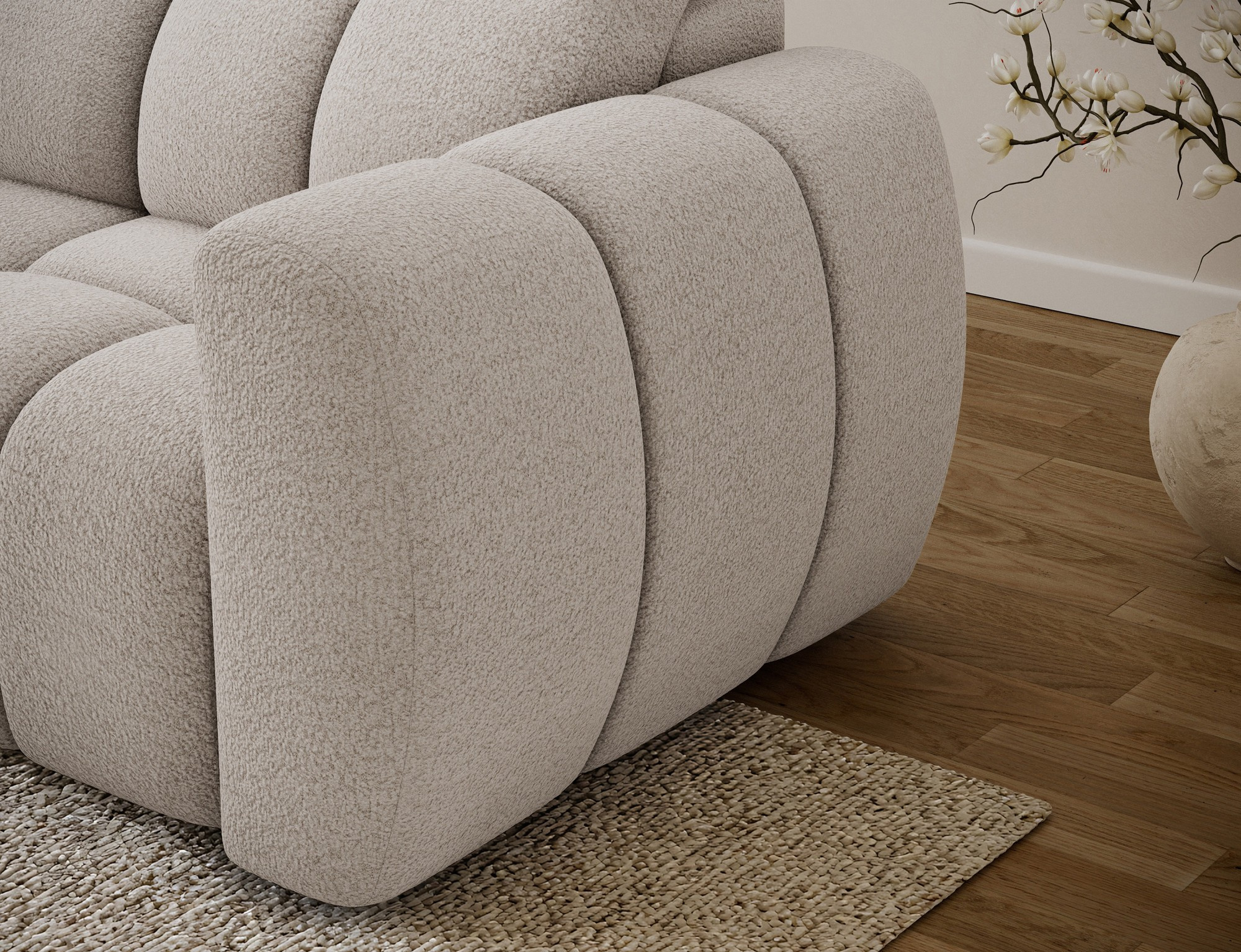 Rohová pohovka Fanito je moderní, prostorná sedací souprava ve tvaru L navržená pro obývací pokoj, která se vyznačuje svým pevným, zaobleným siluetou, hlubokým sedákem a segmentovaným prošíváním, jež zdůrazňuje její designový, ale zároveň útulný charakter—ideální pro relaxační zónu domova. Model měří 288 × 200 × 105 cm a váží 130.6 kg, zajišťující stabilitu a každodenní pohodlí. Výplň sedadla kombinuje vlnové pružiny typu B, vysoce odolnou pěnu HR3030 a 150 g/m² prošívanou výplň, což zajišťuje pružnost, pohodlí a odolnost proti prohýbání, zatímco opěradlo je vyztuženo čalounickými popruhy a profilovanou polyuretanovou pěnou T2316 pro ergonomickou oporu zad. Jako rozkládací pohovka nabízí praktickou spací plochu o rozměrech 85 × 232 × 47 cm a elektrické prodloužení sedadla (aktuátor) o 28 cm vám umožní rychle a bez námahy zvětšit plochu pro odpočinek. Navíc mechanismus opěrky hlavy s vratnou pružinou umožňuje pohodlné nastavení podpory hlavy, což činí rohovou pohovku Fanito vynikající volbou pro každého, kdo hledá pohodlnou rozkládací sedací soupravu, která spojuje styl, funkčnost a vysokou kvalitu zpracování.