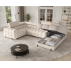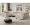 Rohová pohovka Fectory v moderním stylu, měřící 346x205x93 cm, je dokonalou kombinací funkčnosti a estetiky, vybavená vlnovými pružinami typu B a dvojitou vrstvou pěny – T3030 a profilovanou HR3030 – poskytuje vysoký komfort sezení a spaní, disponuje praktickou funkcí spaní a prostorným úložným prostorem na lůžkoviny, ideální pro každodenní použití, čalouněná záda umožňují volné umístění kdekoli v obývacím pokoji, a elegantní černé práškově lakované kovové nohy doplňují vzhled, přidávají lehkost a moderní nádech, rohová pohovka Fectory je stylovou a funkční volbou pro ty, kteří hledají velký, pohodlný kus nábytku s přidanými funkcemi.