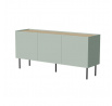 FELLINI komoda 150 olivka/olivka rozměry: V/Š/H - 70cm/150cm/40cm materiál: boky: MDF deska 16 mm lakovaná čela: MDF deska 16mm lakovaná horní a dolní deska: dřevotříska 16mm barva: imitace olejovaného dubu nožky: kovové, černé barvy, výška 20 cm Úchyty: žádné, čela přesahují přes desku
