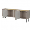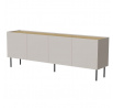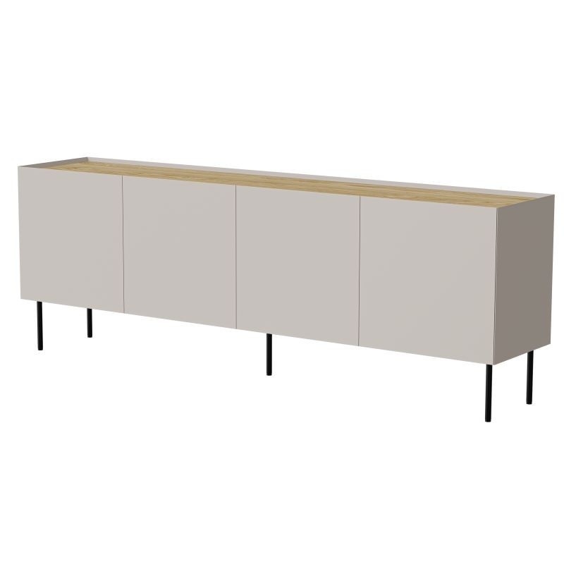FELLINI komoda 200 kašmír/kašmír rozměry: V/Š/H - 70cm/200cm/40cm materiál: boky: MDF deska 16 mm lakovaná čela: MDF deska 16mm lakovaná horní a dolní deska: dřevotříska 16mm barva: imitace olejovaného dubu nožky: kovové, černé barvy, výška 20 cm Úchyty: žádné, čela přesahují přes desku
