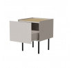 FELLINI noční stolky kašmír/kašmír rozměry: V/Š/H - 60cm/40cm/41cm materiál: boky: lakovaná MDF deska 16 mm čela: lakovaná MDF deska 16 mm horní a dolní deska: dřevotřísková deska 16 mm barva: imitace olejovaného dubu nožky: kovové, černé, výška 20 cm Úchyty: žádné, čela přesahují přes desku