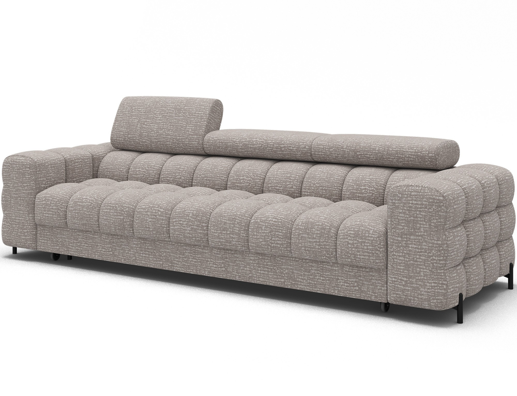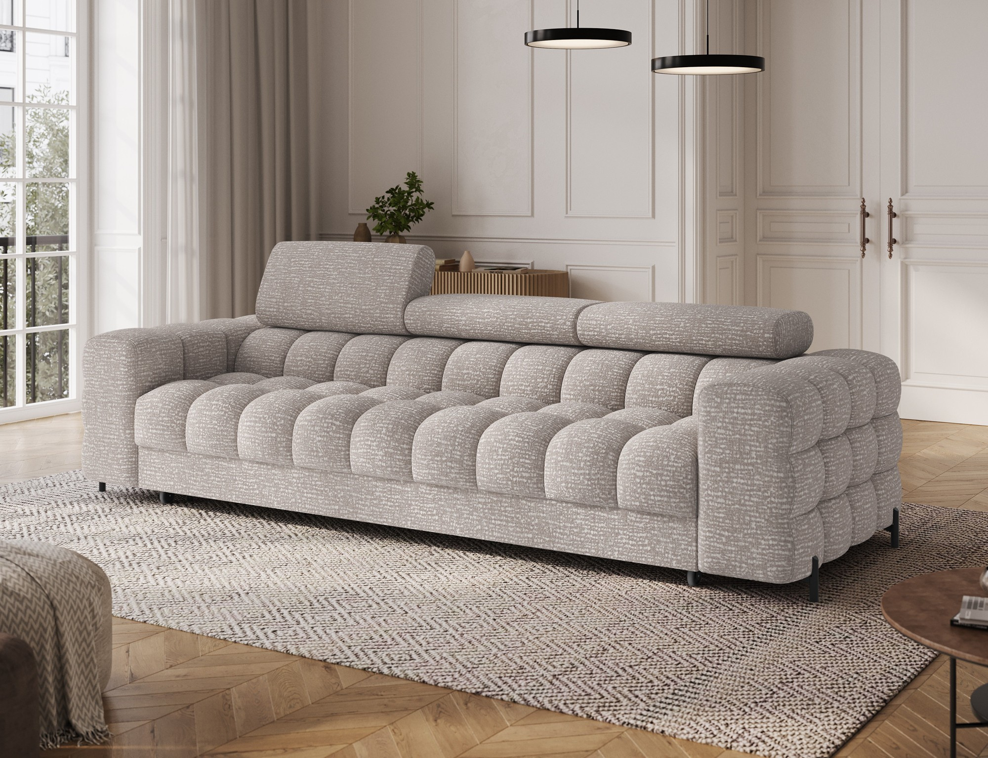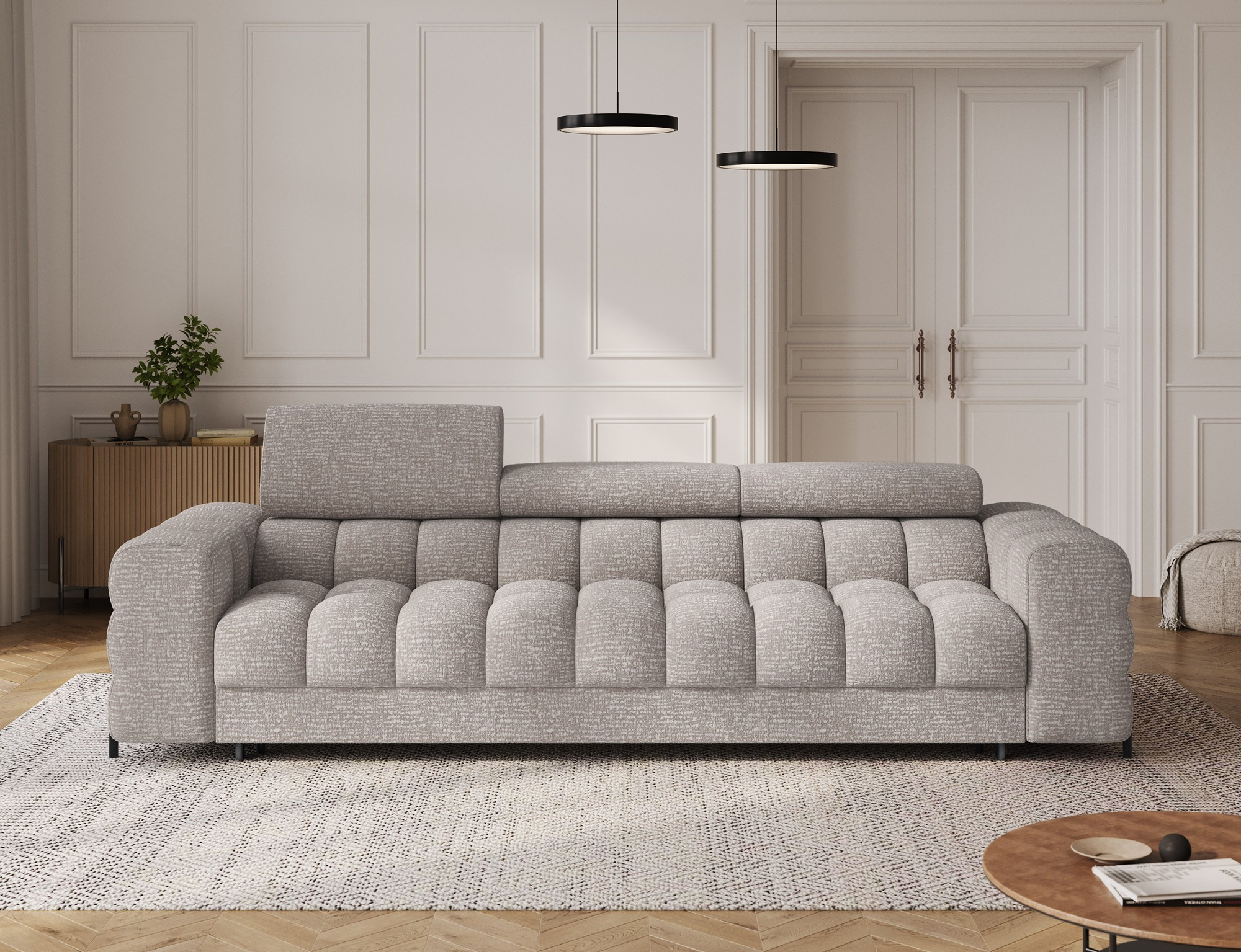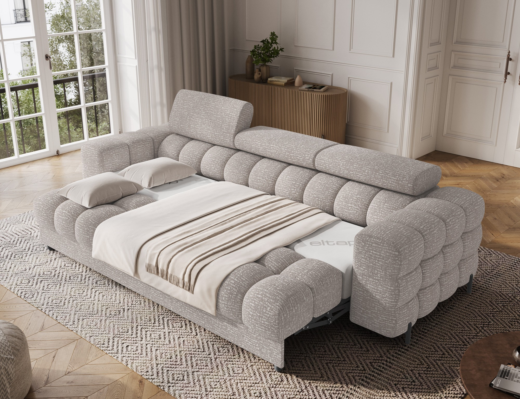 Pohovka Festello je elegantní a moderní kus nábytku, který zaujme svým designem, pohodlím a funkčností. Široké, prošívané sedadlo s výškou 47 cm a nastavitelnými opěrkami hlavy zajišťují maximální pohodlí pro každodenní použití, zatímco plně čalouněná záda dělají pohovku atraktivní z každého úhlu – i když je umístěna uprostřed obývacího pokoje. Díky mechanismu Puma se pohovka rozkládá rychle a bez námahy, což nabízí spací plochu o rozměrech 123x200 cm, což z ní činí praktické řešení pro hosty nebo každodenní odpočinek. Stabilní černé kovové nohy s výškou 9 cm dodávají moderní nádech a usnadňují úklid pod nimi. S rozměry 260x100x96 cm kombinuje pohovka Festello styl, pohodlí a solidní řemeslné zpracování, což z ní činí ideální volbu pro každý moderní interiér.