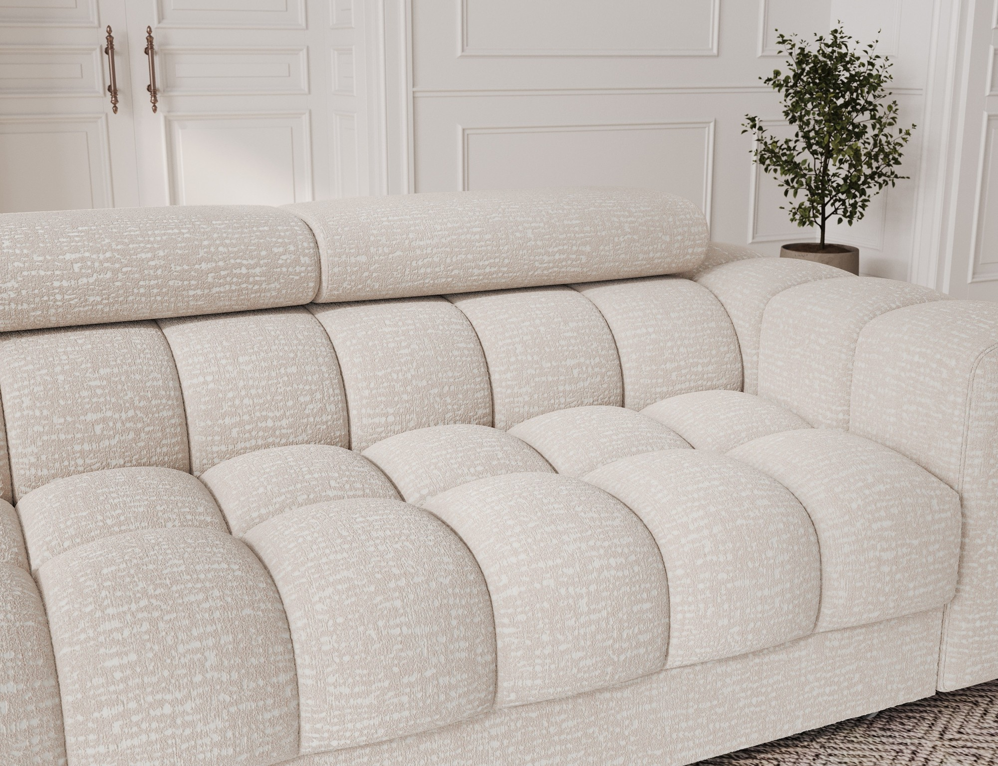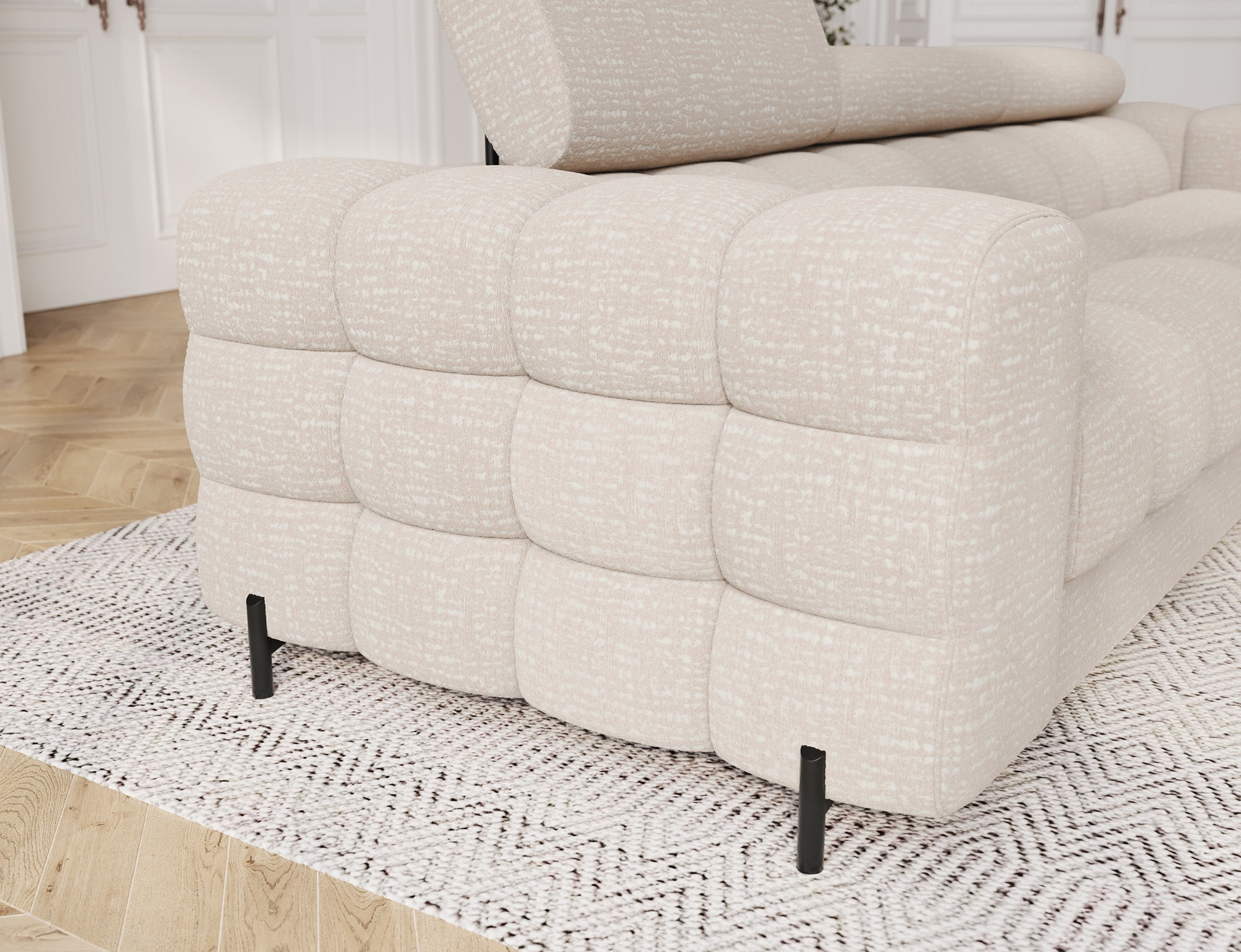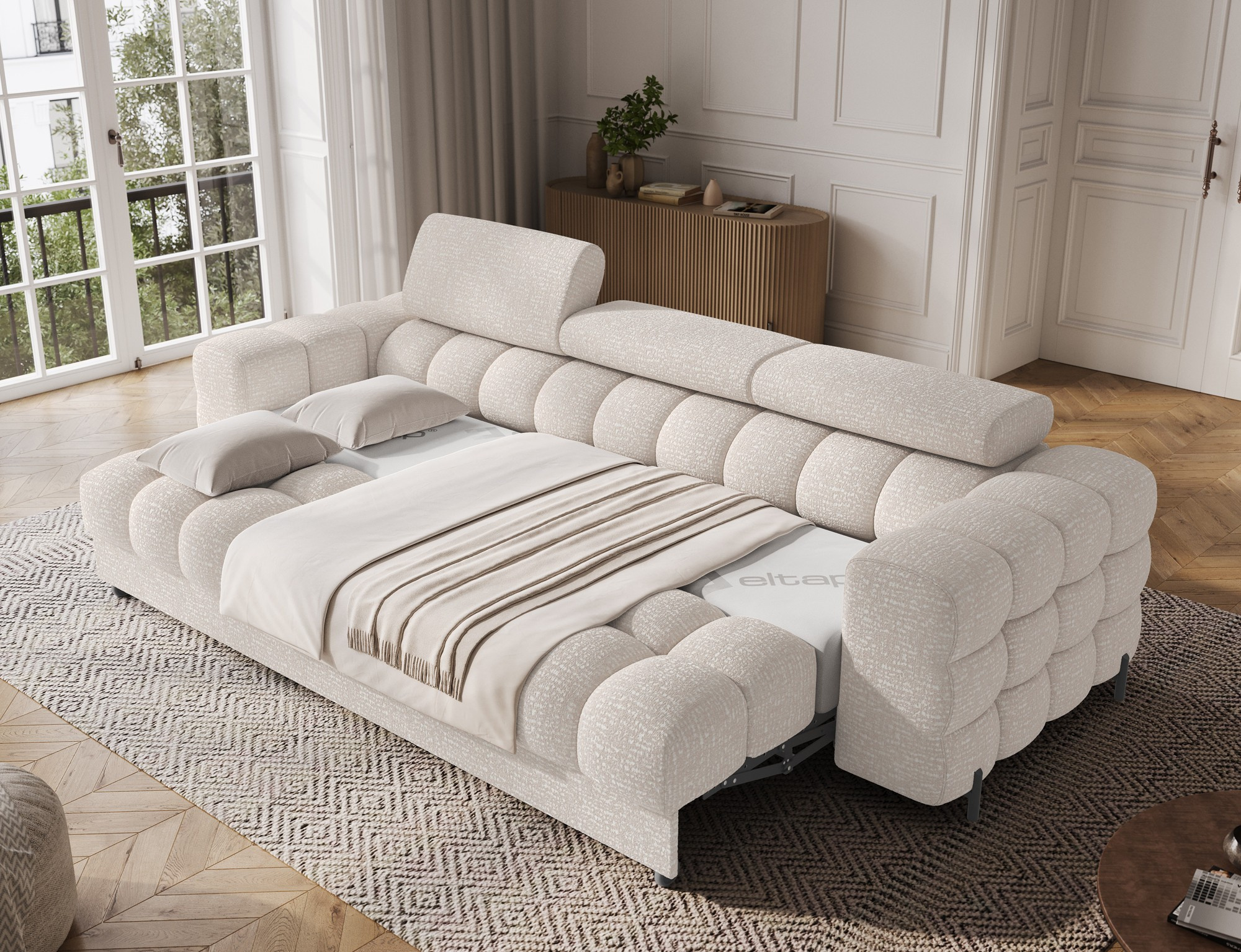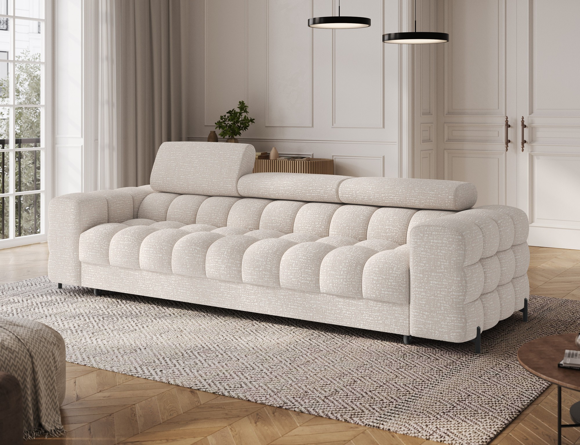Pohovka Festello je elegantní a moderní kus nábytku, který zaujme svým designem, pohodlím a funkčností. Široké, prošívané sedadlo s výškou 47 cm a nastavitelnými opěrkami hlavy zajišťují maximální pohodlí pro každodenní použití, zatímco plně čalouněná záda dělají pohovku atraktivní z každého úhlu – i když je umístěna uprostřed obývacího pokoje. Díky mechanismu Puma se pohovka rozkládá rychle a bez námahy, což nabízí spací plochu o rozměrech 123x200 cm, což z ní činí praktické řešení pro hosty nebo každodenní odpočinek. Stabilní černé kovové nohy s výškou 9 cm dodávají moderní nádech a usnadňují úklid pod nimi. S rozměry 260x100x96 cm kombinuje pohovka Festello styl, pohodlí a solidní řemeslné zpracování, což z ní činí ideální volbu pro každý moderní interiér.