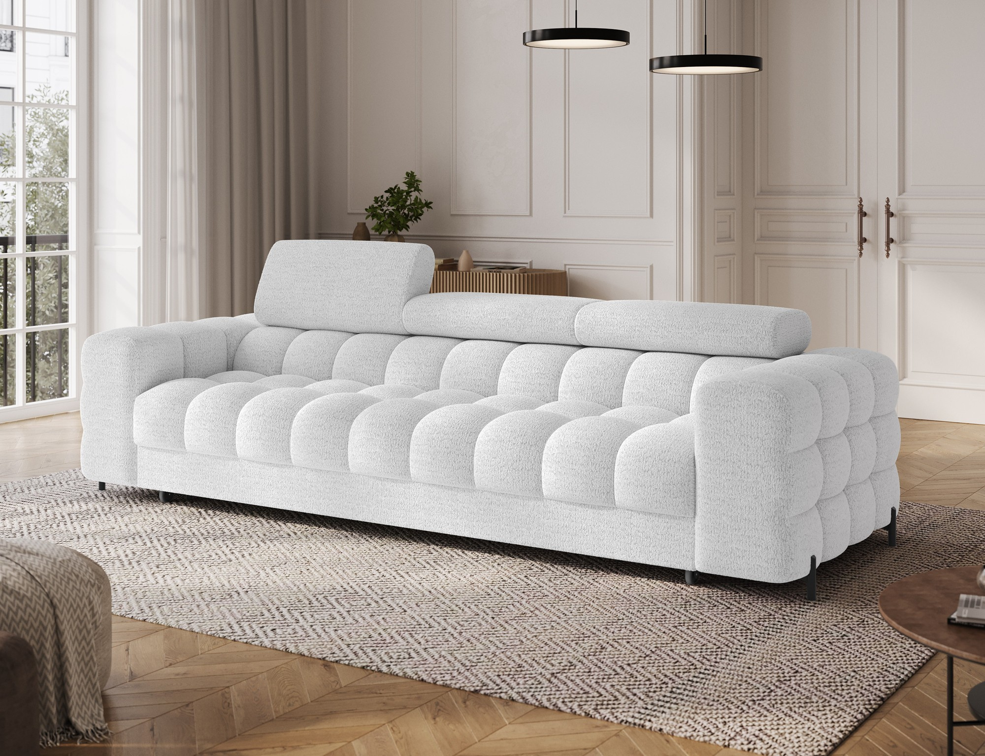 Pohovka Festello je elegantní a moderní kus nábytku, který zaujme svým designem, pohodlím a funkčností. Široké, prošívané sedadlo s výškou 47 cm a nastavitelnými opěrkami hlavy zajišťují maximální pohodlí pro každodenní použití, zatímco plně čalouněná záda dělají pohovku atraktivní z každého úhlu – i když je umístěna uprostřed obývacího pokoje. Díky mechanismu Puma se pohovka rozkládá rychle a bez námahy, což nabízí spací plochu o rozměrech 123x200 cm, což z ní činí praktické řešení pro hosty nebo každodenní odpočinek. Stabilní černé kovové nohy s výškou 9 cm dodávají moderní nádech a usnadňují úklid pod nimi. S rozměry 260x100x96 cm kombinuje pohovka Festello styl, pohodlí a solidní řemeslné zpracování, což z ní činí ideální volbu pro každý moderní interiér.
