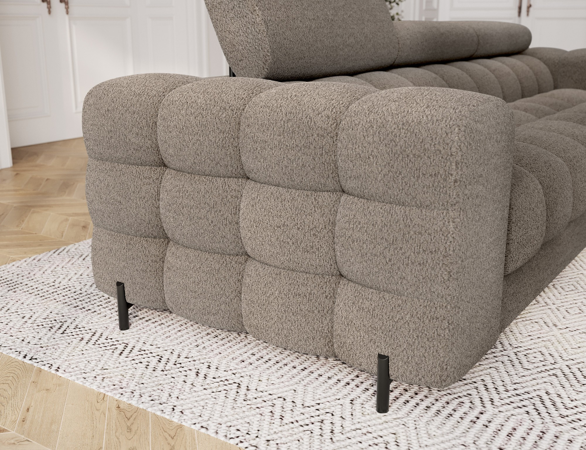 Pohovka Festello je elegantní a moderní kus nábytku, který zaujme svým designem, pohodlím a funkčností. Široké, prošívané sedadlo s výškou 47 cm a nastavitelnými opěrkami hlavy zajišťují maximální pohodlí pro každodenní použití, zatímco plně čalouněná záda dělají pohovku atraktivní z každého úhlu – i když je umístěna uprostřed obývacího pokoje. Díky mechanismu Puma se pohovka rozkládá rychle a bez námahy, což nabízí spací plochu o rozměrech 123x200 cm, což z ní činí praktické řešení pro hosty nebo každodenní odpočinek. Stabilní černé kovové nohy s výškou 9 cm dodávají moderní nádech a usnadňují úklid pod nimi. S rozměry 260x100x96 cm kombinuje pohovka Festello styl, pohodlí a solidní řemeslné zpracování, což z ní činí ideální volbu pro každý moderní interiér.