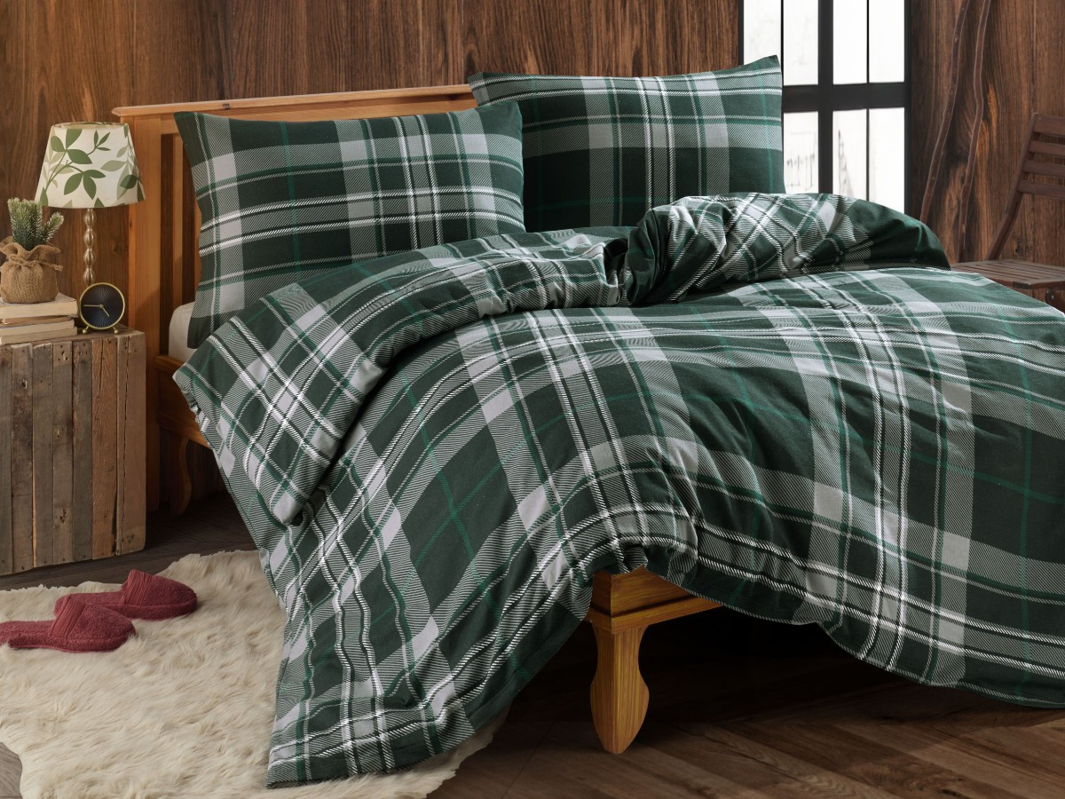 Flanelové francouzské povlečení 240x220, 70x90 Alex green