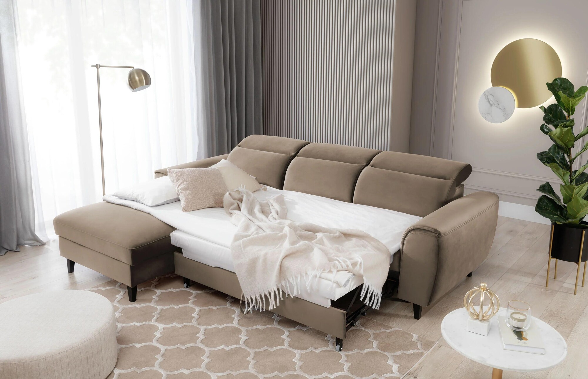 Rohová pohovka Foble s funkcí spaní a úložným prostorem