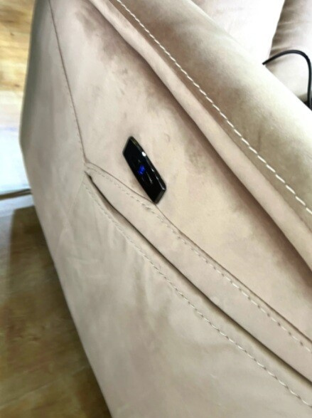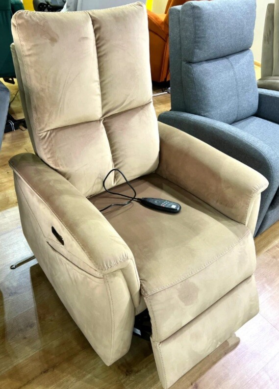 elektrické polohovatelné křeslo, s masážní funkcí a bederním vyhříváním, dálkové ovládání, USB port, sametová tkanina: Bluvel, max. 150 kg 2xnapájení Napájení pro masáž: 1200mA/12V Napájení pro rozkládání: Napájení: 2000mA/29V