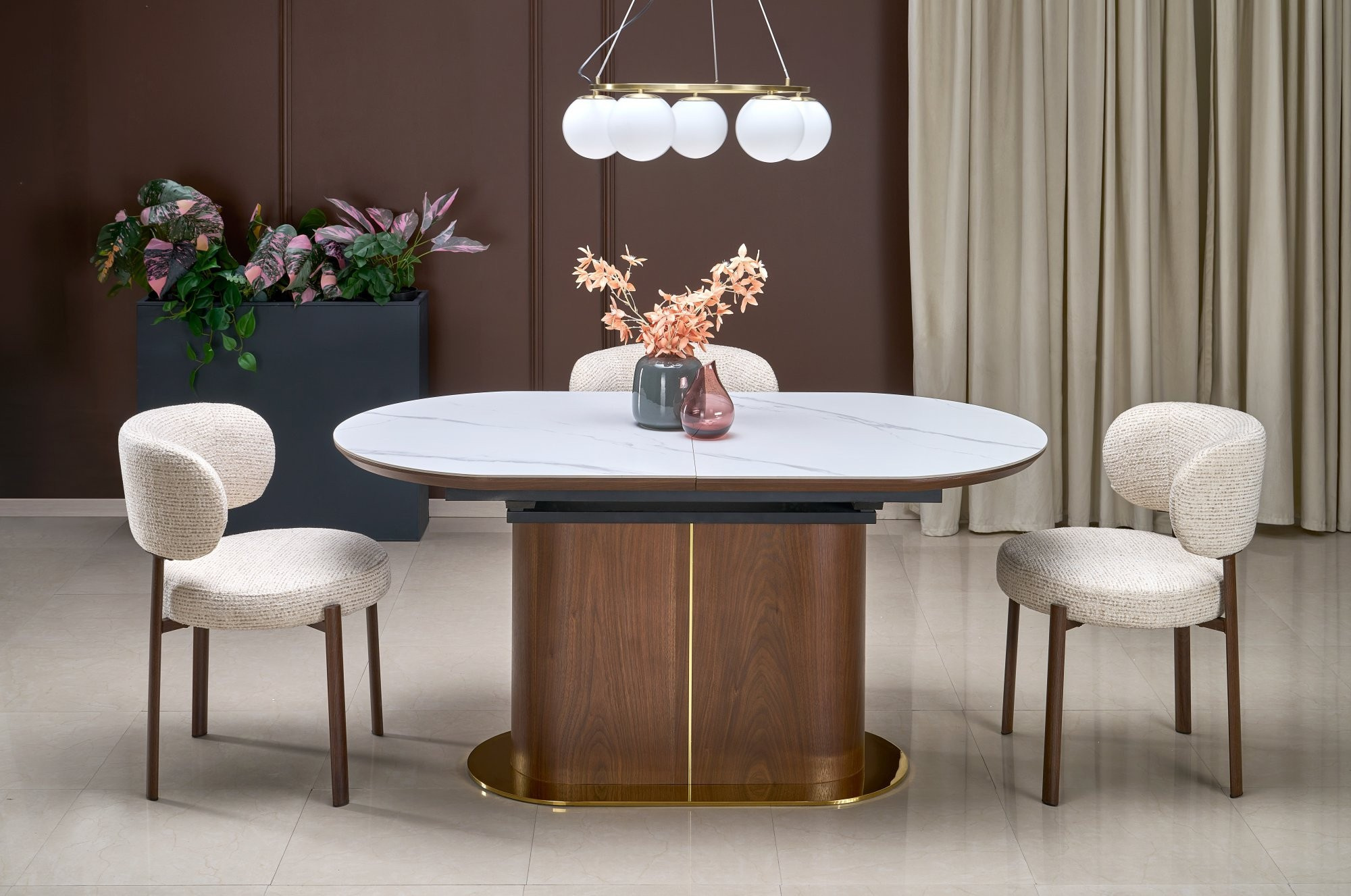 GIBSON rozkládací stůl, bílý mramor / ořechový / zlatý (3p=1ks)
