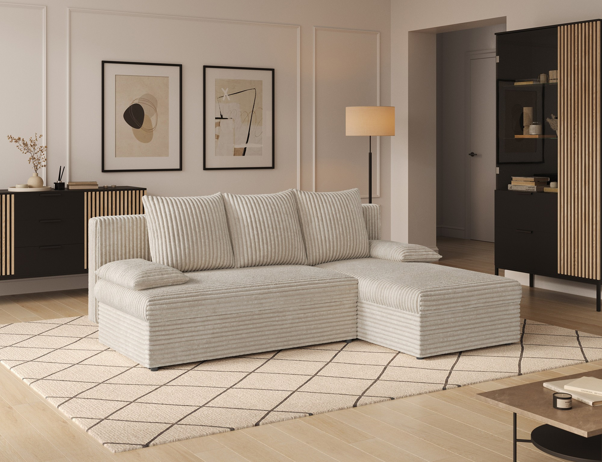 Objevte dokonalou kombinaci stylu, pohodlí a funkčnosti s naší sedací soupravou GINO. Tato rohová sedací souprava je navržena tak, aby se stala středobodem vašeho obývacího pokoje, a to díky svému modernímu designu a praktickým vlastnostem.