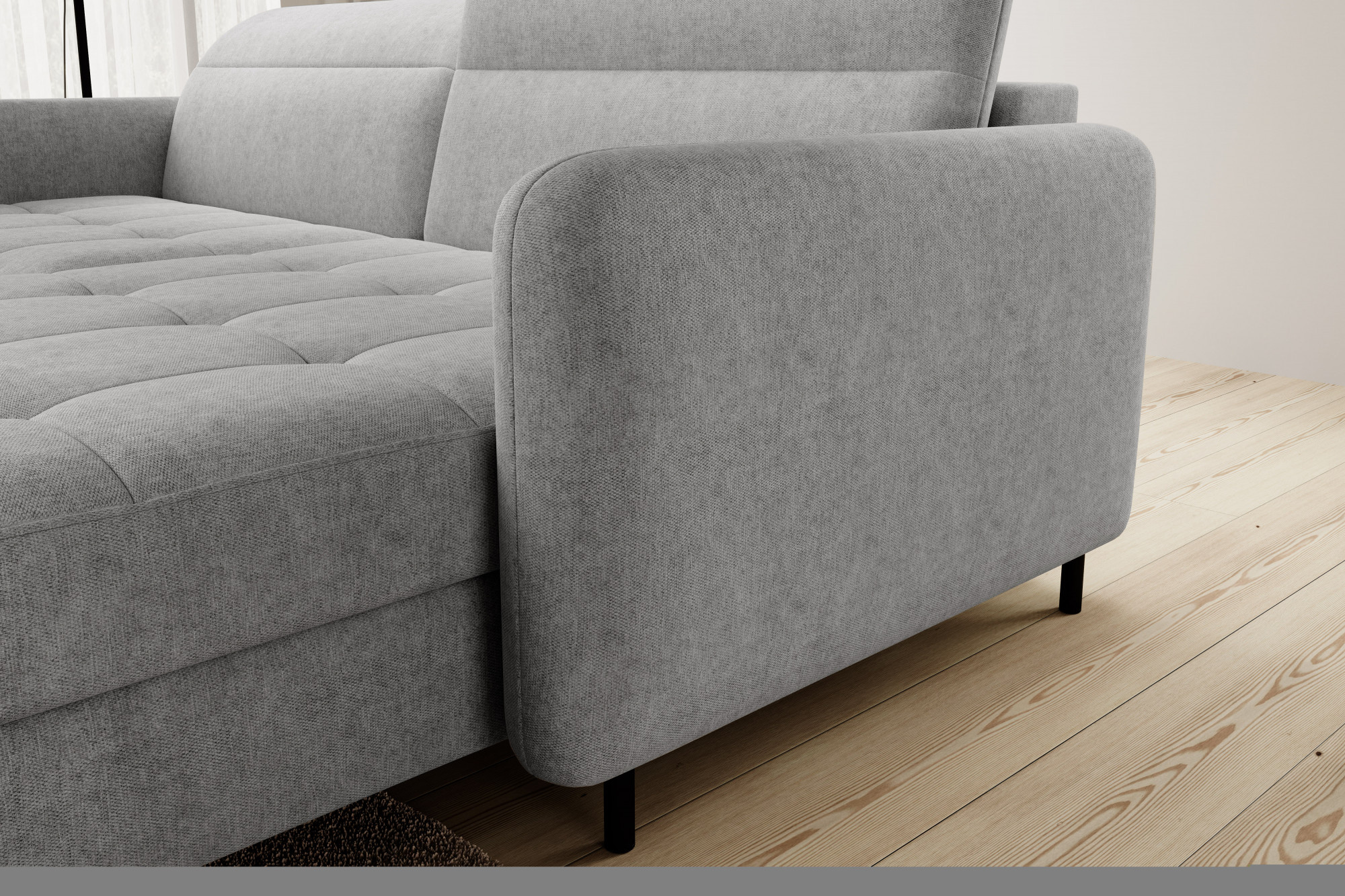 Tato rohová sedací souprava je navržena s ohledem na vaše potřeby. Disponuje praktickým úložným prostorem, který vám umožní snadno uschovat deky, polštáře nebo jiné předměty, které chcete mít po ruce, ale zároveň je mít úhledně uklizené. Rozkládací mechanismus promění sedací soupravu v pohodlné lůžko s plochou na spaní o rozměrech 128 x 200 cm, což je ideální pro hosty nebo pro příležitostné přespání.