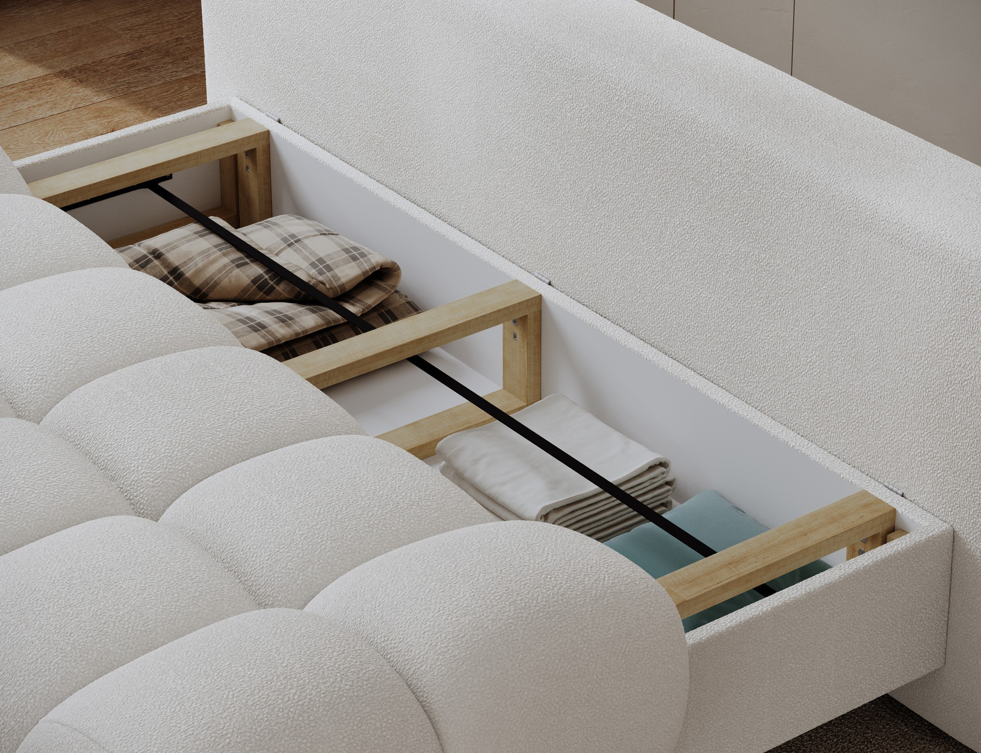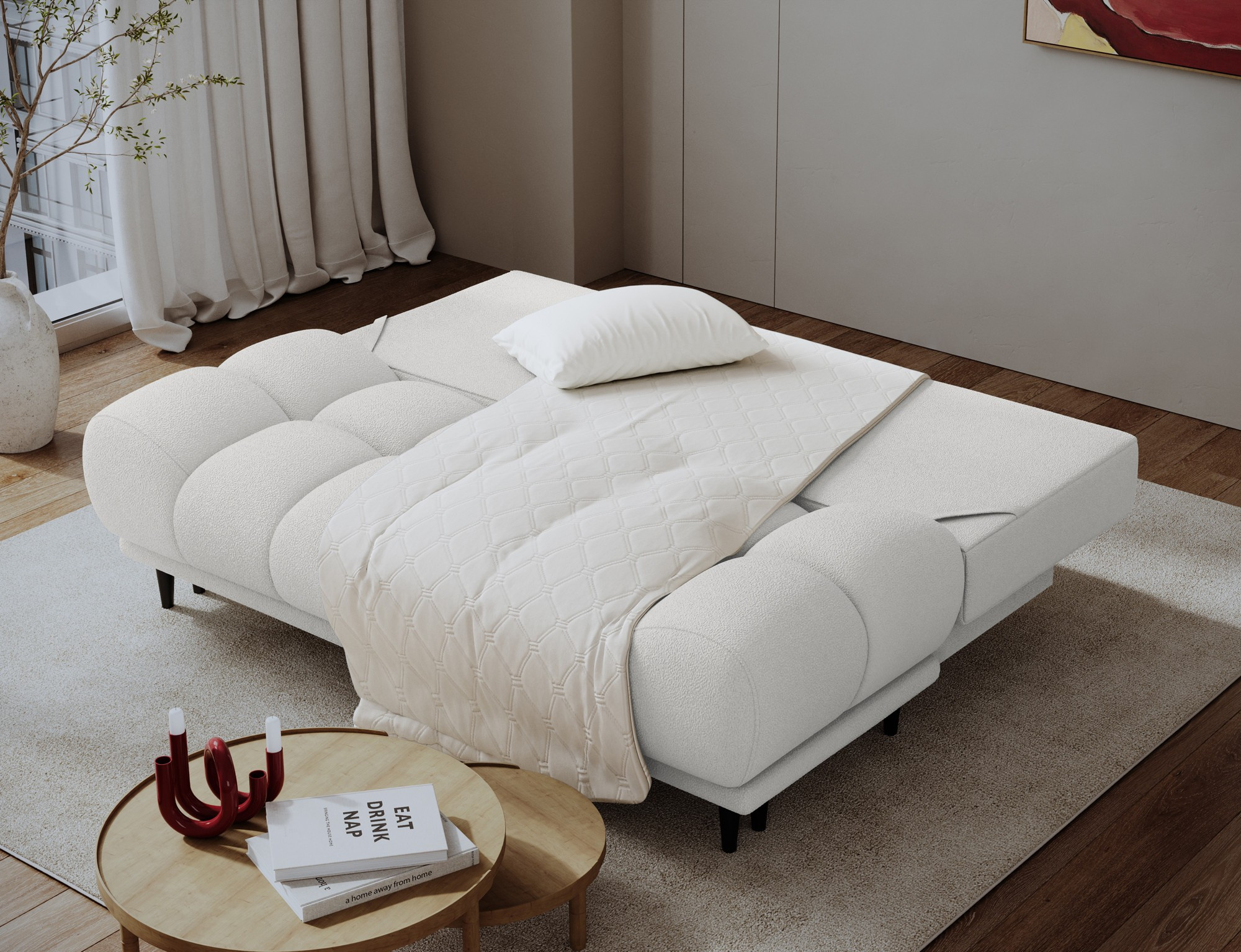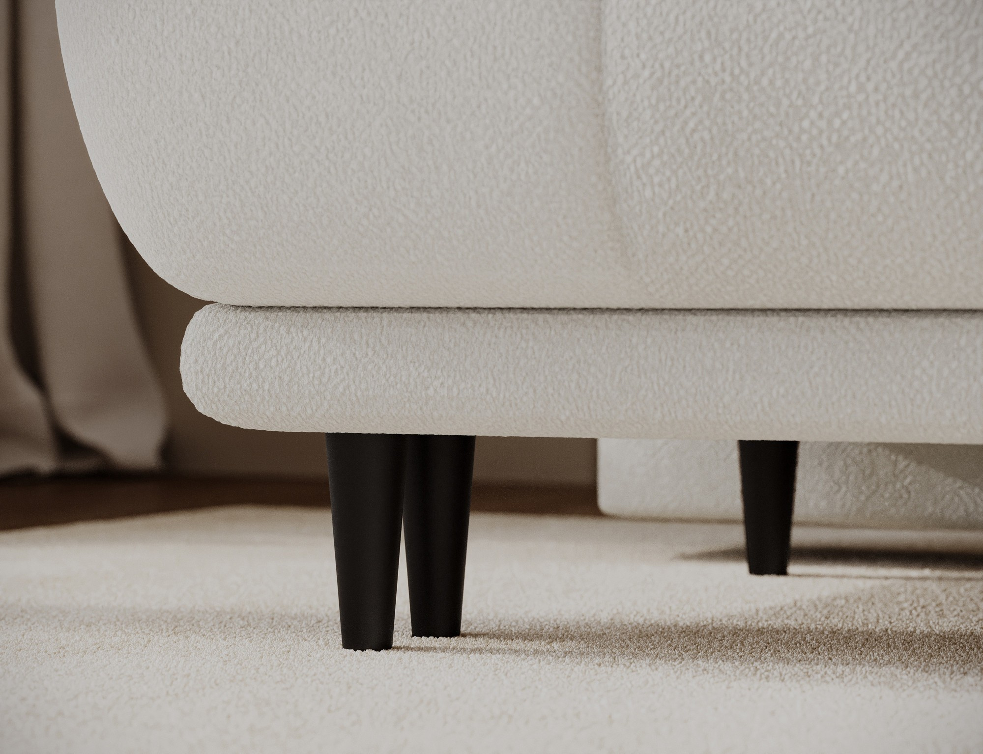 Pohovka Guavio je moderní a funkční kus nábytku navržený pro každodenní pohodlí. Jeho elegantní, zaoblený tvar a měkké polštáře dokonale doplňují moderní interiérové designy. Pohovka má rozměry 210 × 91 × 97 cm a váží 72.6 kg, zajišťující stabilní konstrukci. Sedák je vyplněn vlnovou pružinou typu B a pěnou HR3030 pro pružnost a pohodlí, zatímco opěradlo se skládá z polštářů naplněných pěnovým granulátem, který se přizpůsobuje tělu. Pohovka zahrnuje funkci spaní s plochou 140 × 210 cm a DL mechanismem s pružinou, která podporuje snadné rozložení do pohodlné postele. Další kontejner na ložní prádlo pomáhá udržovat pořádek. Guavio je dokonalou kombinací designu, praktičnosti a pohodlí, vytvořenou pro moderní interiéry.