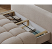 Pohovka Guavio je moderní a funkční kus nábytku navržený pro každodenní pohodlí. Jeho elegantní, zaoblený tvar a měkké polštáře dokonale doplňují moderní interiérové designy. Pohovka má rozměry 210 × 91 × 97 cm a váží 72.6 kg, zajišťující stabilní konstrukci. Sedák je vyplněn vlnovou pružinou typu B a pěnou HR3030 pro pružnost a pohodlí, zatímco opěradlo se skládá z polštářů naplněných pěnovým granulátem, který se přizpůsobuje tělu. Pohovka zahrnuje funkci spaní s plochou 140 × 210 cm a DL mechanismem s pružinou, která podporuje snadné rozložení do pohodlné postele. Další kontejner na ložní prádlo pomáhá udržovat pořádek. Guavio je dokonalou kombinací designu, praktičnosti a pohodlí, vytvořenou pro moderní interiéry.