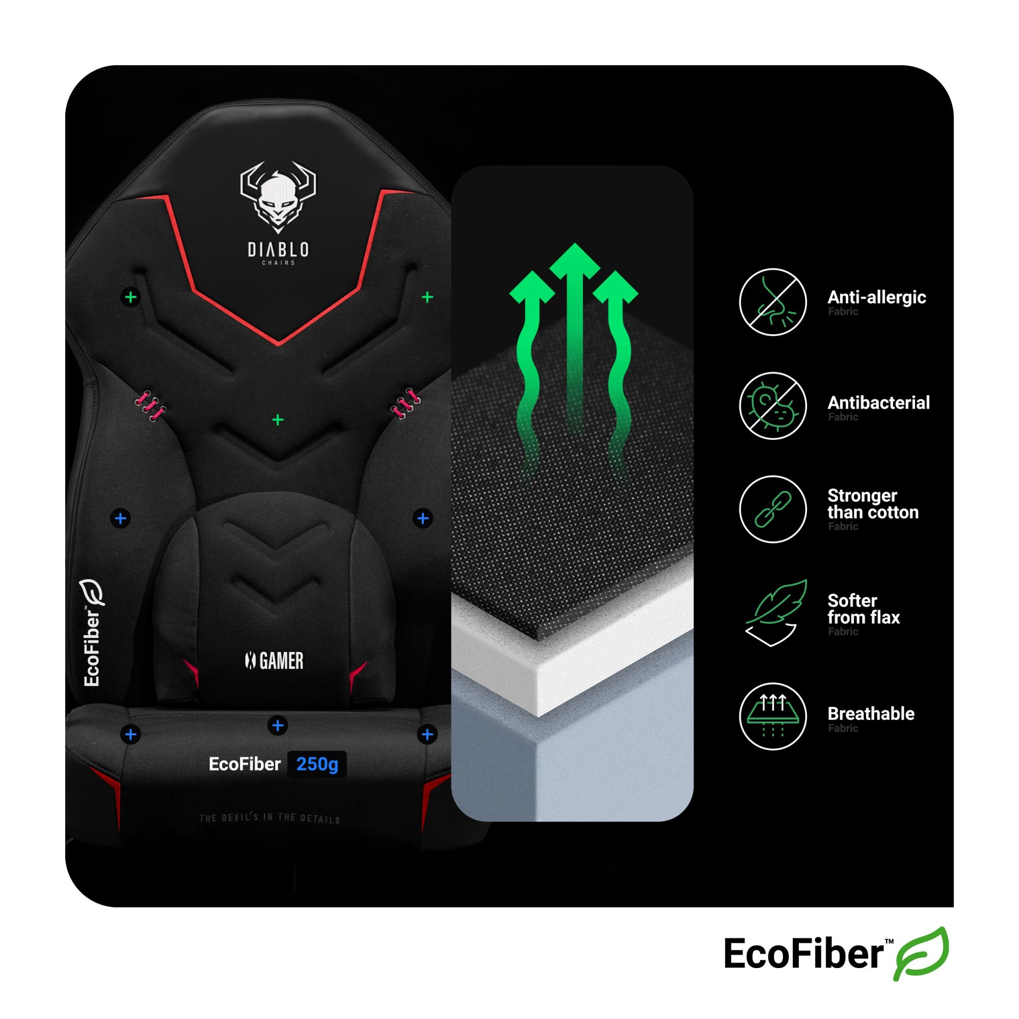 Herní křeslo DIABLO X-GAMER DARK OBSIDIAN: NORMÁLNÍ VELIKOST Před tebou je Diablo X-Gamer – revoluční herní křeslo, které nadchne každého pravého hráče a zajistí, že každodenní hraní bude pohodlné, bezpečné a plné neobyčejných emocí. Poznej ho blíže a přesvědč se, že X-Gamer je skvělým společníkem nejen při hraní her, ale také během práce nebo studia u stolu. MATERIÁLOVÉ ČALOUNĚNÍ ECOFIBER™ Příjemné na dotek čalounění sedáku a opěradla křesla Diablo X-Gamer je vyrobeno z materiálu EcoFiber™. Vyznačuje se velmi vysokou odolností proti oděru a prodyšností, díky čemuž naše Herní křeslo zajišťuje vynikající cirkulaci vzduchu a i v nejteplejších dnech chrání postavu před přehřátím. S modelem X-Gamer vás čeká neobyčejné pohodlí během každé hry! POHODLNÉ SEDADLO S PĚNOU HR Celé křeslo je vyrobeno z elastické pěny HR, která vám poskytne překvapivě měkkou a pohodlnou polohu. Sedák Comfort Layer™ je nyní vyplněn dodatečným množstvím měkké pěny, díky čemuž Diablo X-Gamer zaručuje komfort na nejvyšší úrovni! PODPORA BEDERNÍ ČÁSTI PÁTEŘE Díky tvarovanému bedernímu polštáři při každém opření zad podporujete páteř a zaujímáte ergonomickou, pro držení těla bezpečnou polohu. Polštář se dokonale přizpůsobí tvaru vaší postavy, což zaručuje pohodlí při sezení. Navíc dokonale přiléhá k povrchu opěradla bez upevnění, takže získáte pohodlný polštář vyplněný elastickou pěnou Memory, který můžete využít jako měkkou oporu pro páteř nebo hlavu nejen ve svém novém herním křesle. SPOLEHLIVÁ REGULACE Tilttech™ Butterfly je spolehlivý systém umožňující přizpůsobení výšky sedadla vzhledem k úrovni stolu a vaší výšce. S odpovídající regulací pokaždé zaujmeš ergonomickou, pohodlnou pozici a získáš dodatečné pohodlí, i po mnoha hodinách hraní, práce nebo studia. Navíc tento systém obsahuje vestavěnou funkci Tilttech™ Swing, která umožňuje příjemné a bezpečné houpání. Vestavěné kolečko umožňuje nastavit sílu tlaku potřebnou k naklonění sedadla spolu s opěradlem během relaxačního houpání, takže ji můžete snadno přizpůsobit své váze a pohodlně se houpat v křesle. Odchýlí se až do 115°! DOKONALÉ TLUMENÍ Diablo X-Gamer se snadno přizpůsobí přirozeným pohybům vaší postavy a zajistí, že sedící pozice bude mimořádně pohodlná. Nezbytné odpružení je zásluhou solidního zvedáku Tilttech™ Lift s vestavěným mechanismem Air Damper™ System. Nyní bude každá hra pohodlná jako nikdy předtím! POHODLNÉ PODRUČKY Područky Armtech™ Hold SoftTouch jsou nezbytnou oporou pro vaše předloktí. Odlehčí ruce a zápěstí a zajistí, že přirozeně zaujmete pohodlnou, ergonomickou polohu. Navíc je jejich povrch vyplněn pěnou, takže jsou překvapivě měkkou a pohodlnou oporou. KAUČUKOVÁ KOLEČKA PFC™360, 60 mm Kaučukový povrch obratných koleček je vynikající ochranou vaší podlahy před vznikem škrábanců. Můžeš využívat mobilitu křesla na každém povrchu, bez jakýchkoliv obav! DESIGN VE STYLU DIABLO Podívej se na něj pozorně a představ si potěšení z hraní, které tě s modelem X-Gamer čeká už od prvního okamžiku. Masivní silueta obalená příjemným na dotek, látkovým čalouněním v hluboké černé přitahuje každý pohled. Impozantní konstrukce, stylové výšivky a výrazné detaily Diablo způsobí, že tento model zrevolucionizuje interiér tvého pokoje. Celá zadní část opěradla je pokryta hladkou ekokůží HDS™, díky které získává křeslo sportovní design a spektakulárně promění vaše herní stanoviště! Vsaďte na dokonale vyvážené spojení spolehlivých technických řešení a neobyčejného designu. Důvěřuj síle Diabla a přesvědč se, že potěšení z hraní her lze povýšit na zcela novou úroveň.