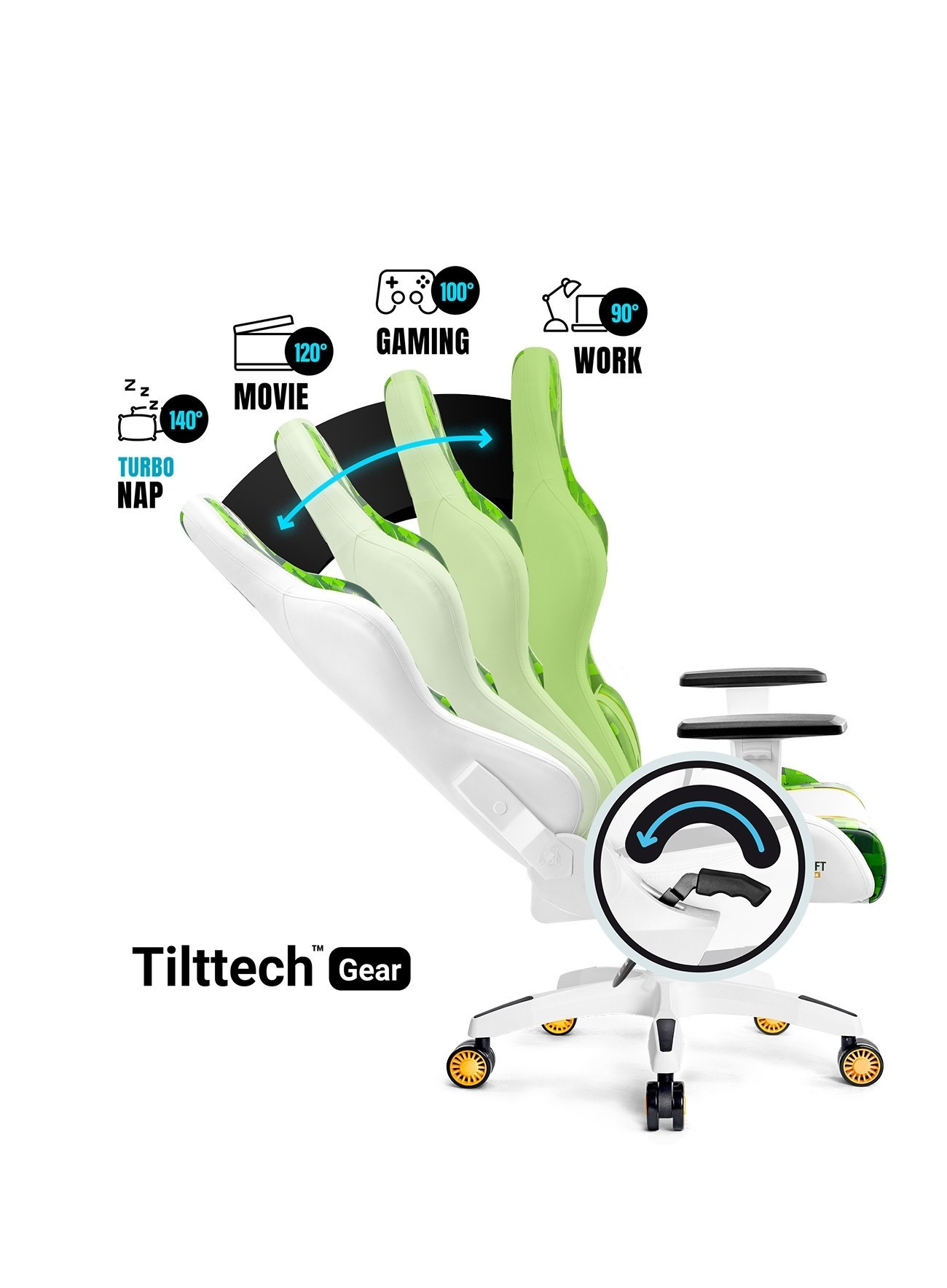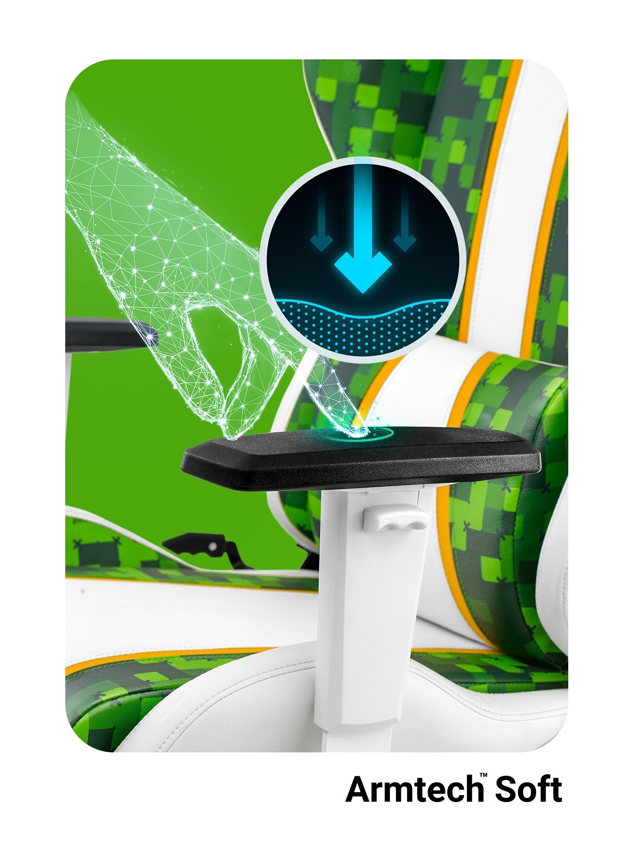 Vlastnosti: Bestsellerový model křesel Diablo Charis Velké a pohodlné křeslo, vhodné pro vysoké hráče Tvar podporující vaši páteř Pohodlné polštáře s možností nastavení Výplň z měkké HR pěny Vysoce kvalitní, odolná ekokůže Područky nastavitelné nahoru-dolů Maximální zatížení do 160 kg Herní křeslo DIABLO X-ONE 2.0 CRAFT EDITION: KING SIZE Každý hráč potřebuje sestavu, která odráží jeho individuální charakter a umožní mu vyniknout. Herní křeslo je však mnohem více než jen výrazný doplněk počítačového pracoviště – musí účinně dbát o pohodlí a zajišťovat bezpečnost, která je nezbytná během každé hry. Právě proto jsme vytvořili model X-One 2.0 ve verzi Craft Edition. PŘIZPŮSOBENÝ VAŠIM POTŘEBÁM Křeslo ve velikosti KING je ideální pro vysoké osoby, které potřebují větší oporu pro optimální fungování po dlouhé hodiny.Diablo X-One 2.0 KING zaručuje snadné a přesné nastavení nahoru-dolů. Díky tomu přizpůsobíš křeslo výšce a výšce stolu.Spolehlivý systém Tilttech™ Swing umožňuje bezpečné a relaxační houpání.Herní křeslo umožňuje naklonění opěradla až do 140° a zablokování v zvolené poloze. Získáváš komfort na nejvyšší úrovni.DYNAMICKÝ A VÝRAZNÝ Bílá a zelená jsou barvy, díky kterým se místo u stolu stane hypnotizujícím a energetickým. Impozantní silueta našeho herního křesla přitahuje pozornost a vyvolává spoustu herních emocí, zatímco masivní základna a charakteristická loga doplňují celek, což činí Craft jedním z nejunikátnějších modelů. VÝJIMEČNÉ ČALOUNĚNÍ Měkké čalounění velkého bílo-zeleného herního křesla je vyrobeno z ekokůže HDS™, díky čemuž je nejen výrazné a originální a mimořádně příjemné na dotek, ale především překvapivě odolné a odolné proti oděru. Navíc nylonové nitě zajišťují materiálu vynikající napětí, takže si zachová svůj vzhled po mnoho let.ODPOVÍDAJÍCÍ VYPLNĚNÍ Celou konstrukci vyplňuje velké množství měkké HR pěny, díky čemuž ti Craft zajistí mimořádně pohodlnou polohu. Díky pěně zůstane křeslo i po mnoha letech používání stejně pohodlné a neprosedí se ani nezdeformuje.ERGONOMICKÁ OPĚRKA HLAVY Opěrka hlavy zajistí, že při každém opření hlavy získáte spoustu pohodlí a vyhnete se naklánění krku a jeho vysouvání dopředu. Vaše záda získají spolehlivou ochranu před vznikem nebo prohlubováním vad držení těla a výplň z měkké HR pěny zajišťuje dodatečné pohodlí.ERGONOMICKÝ BEDERNÍ POLŠTÁŘ Ergonomický bederní polštář dokonale podpoří dolní část vaší páteře. Jeho profilovaný tvar a výplň z měkké HR pěny jsou zárukou, že záda pokaždé zaujmou bezpečnou a pohodlnou polohu.PODLOKETNÍKY S NASTAVENÍM Správná opora pro ruce je zárukou stabilní a ještě pohodlnější pozice, a s modelem X-One 2.0 svá předloktí položíš na měkkou pěnou pokryté područky Armtech™ Vertical SoftTouch. Díky regulaci v rovině nahoru-dolů podpoří ruce po celé délce, stabilizují celou postavu a usnadní přijetí ergonomické polohy.SPOLEHLIVÝ ZÁKLAD Postarali jsme se o každý detail. Vybavili jsme naše Herní křeslo obratnými kolečky PFC™ 360, která jsme osadili ráfky a pokryli speciálním kaučukovým povlakem, který chrání před vznikem škrábanců na povrchu podlahy. Craft překvapuje v každém ohledu!