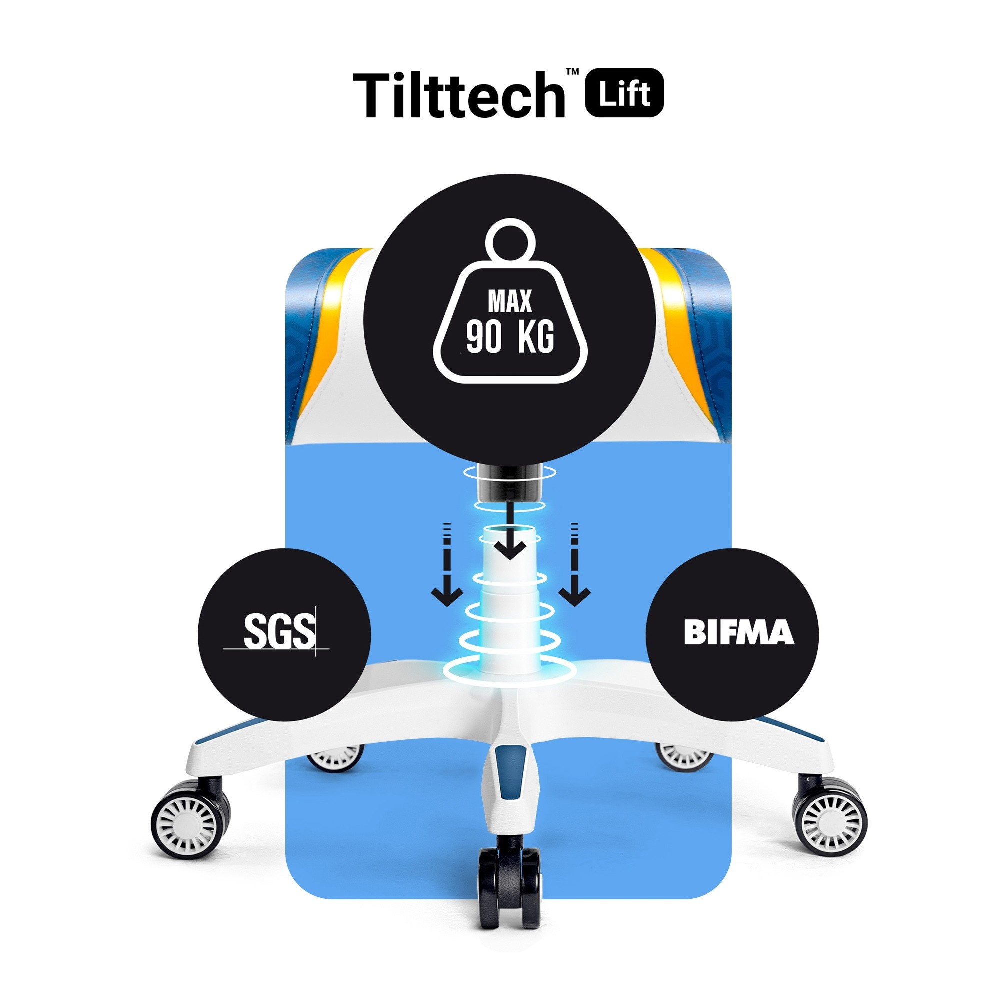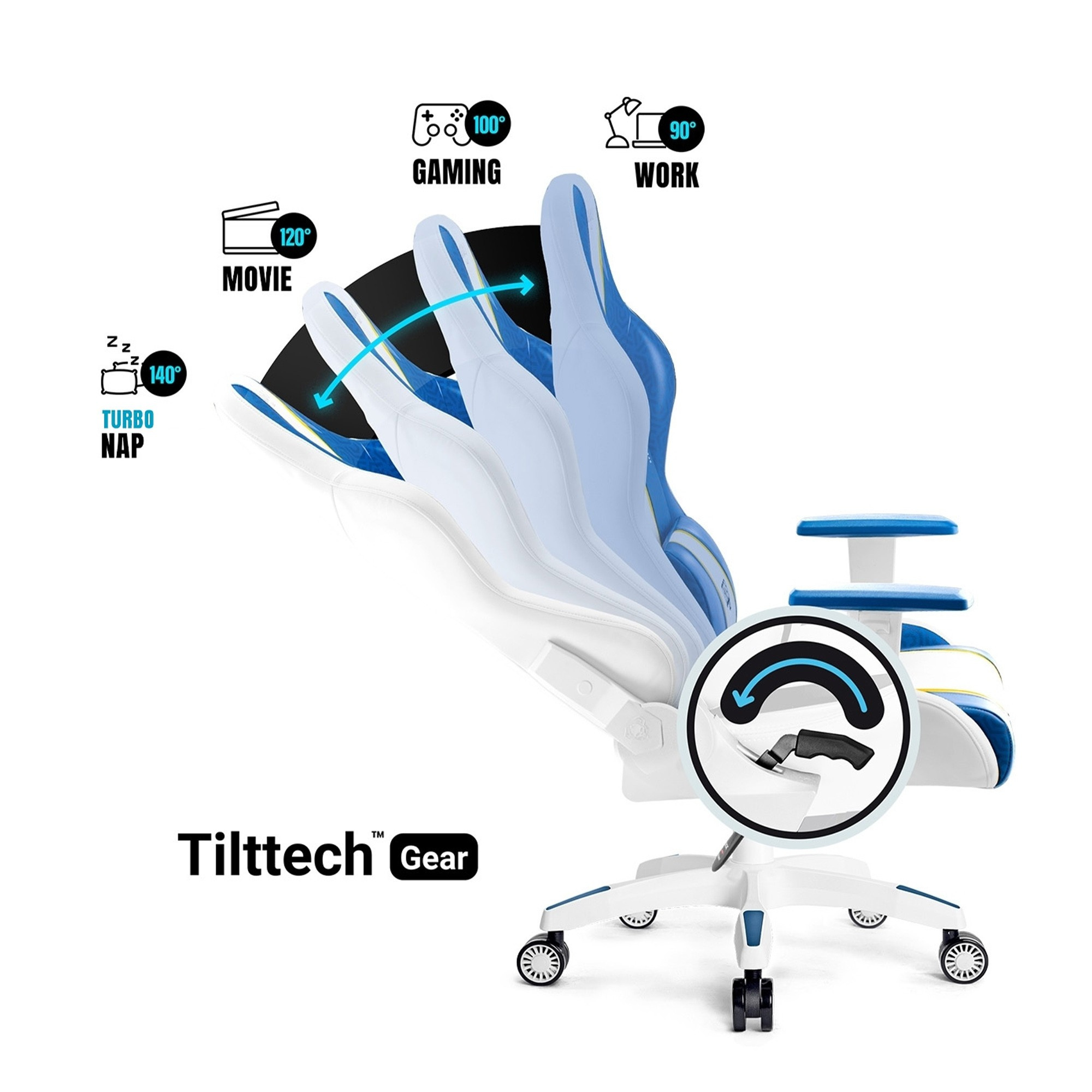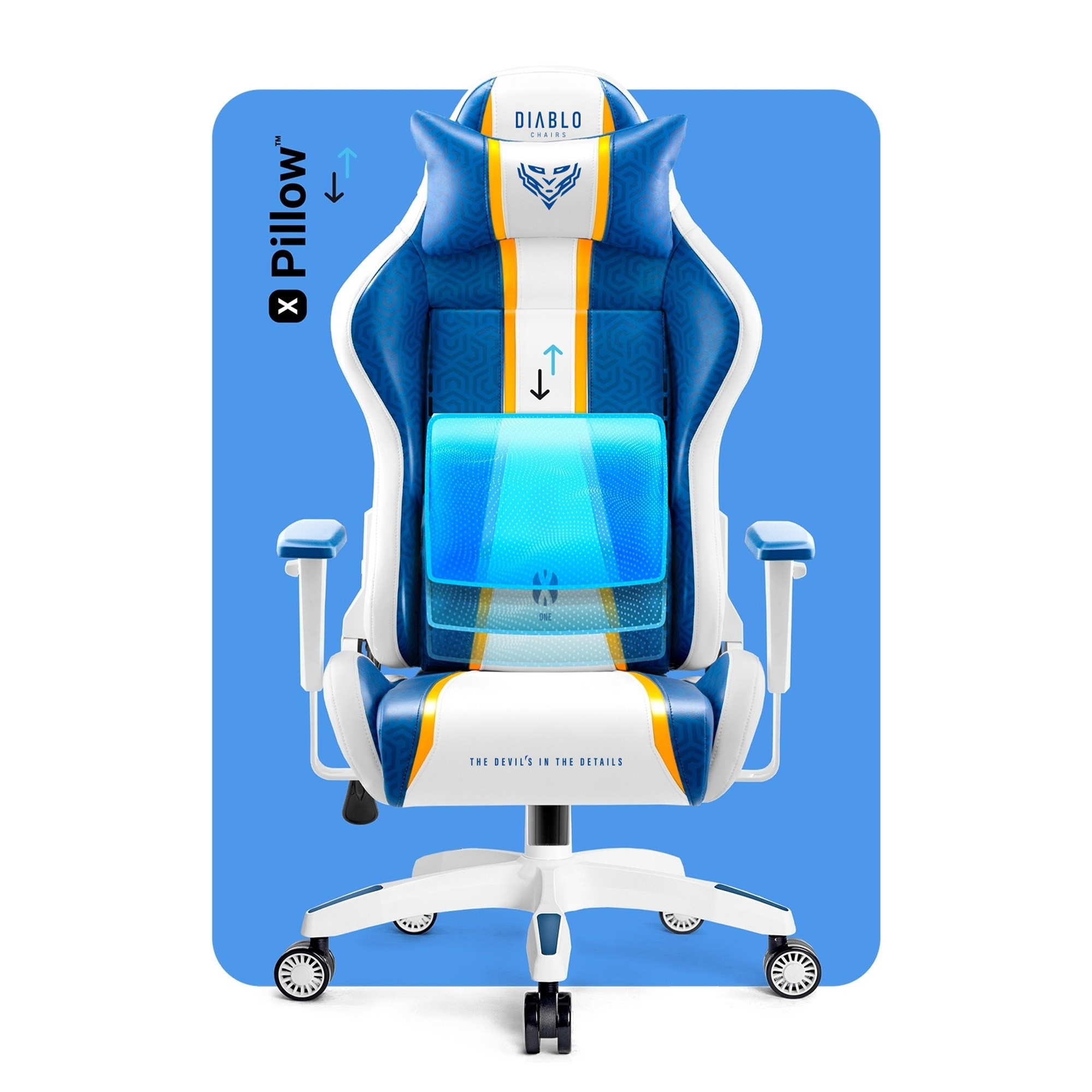 Vlastnosti: Vynikající opora a stabilizace postavy Ideální přizpůsobení výšky k růstu Tvar podporující vaši páteř Pohodlné polštáře s možností nastavení Výplň z měkké HR pěny Vysoce kvalitní, odolná ekokůže Područky nastavitelné nahoru-dolů Maximální zatížení do 90 kg MALÁ BÍLO MODRÁ HERNÍ ŽIDLE – KOMFORT V KAŽDÉ POZICI Zde je malá bílo modrá otočná židle k psacímu stolu, která na první pohled okouzlí hráče v každém věku! Diablo X-One 2.0 ve verzi Aqua Blue bude neobyčejným doplňkem pokoje nebo kanceláře a vynikající oporou pro držení těla během každodenní práce nebo hraní her.BALÍČEK NASTAVENÍ Naše otočné křeslo přesně přizpůsobíte své postavě, což vám umožní sedět ještě pohodlněji a zapomenout na bolesti zad i po mnoha hodinách u počítače.Systém Tilttech™ Butterfly ti umožní nastavit výšku sedadla vzhledem k úrovni stolu a tvé výšce, díky čemuž přirozeně zaujmeš pohodlnou a bezpečnou pozici. Systém Tilttech™ Swing umožňuje bezpečné houpání během práce nebo hraní, což zajišťuje příjemnou relaxaci. Opěradlo má možnost rozložení a zablokování v libovolném bodě díky spolehlivému mechanismu Tilttech™ Gear. NEOBVYKLÝ DESIGN Bílá a modrá jsou barvy, které přitahují pohled a dodávají interiéru neotřelý, výrazný charakter. Masivní silueta, charakteristické mřížky a loga Diablo jsou kombinací, která vykouzlí úsměv na tváři každého!KVALITA A ODOLNOST Masivní silueta Diablo X-One 2.0 tvoří měkká a překvapivě odolná proti deformacím pěna HR. Díky ní si pokaždé sednete zcela pohodlně a naše otočné křeslo zůstane po dlouhá léta bez promáčklin.DÝCHAJÍCÍ ČALOUNĚNÍ Z EKOKŮŽE Pěnu HR pokrývá příjemné na dotek a mimořádně odolné čalounění z ekokůže HDS™. Silné nylonové nitě zajišťují tomuto odolnému materiálu vynikající napětí a perfektní vzhled na léta.PROFILOVANÁ OPĚRKA HLAVY Abychom účinně zajistili správné držení těla, vybavili jsme naši herní židli X-One 2.0 v měkký, nastavitelný opěrák hlavy. Díky němu získá krční část páteře správnou polohu pokaždé, když se posadíte do křesla. To umožní vyhnout se naklánění a vysouvání hlavy dopředu, což ochrání záda před vznikem nebo prohloubením vad držení těla.ERGONOMICKÝ DUET Malé Herní křeslo bílo modré je hypnotizujícím doplňkem interiéru a nenahraditelnou podporou v boji za správné držení těla. Opěradlo křesla má opěrku hlavy a bederní polštář, které budou aktivně podporovat páteř po celé její délce. Opěrka hlavy ochrání před nakláněním krku a hlavy do škodlivé polohy, zabezpečí horní část zad a pomůže vytvořit návyk správného sezení. Bederní polštář je tvarovaná opora páteře v dolní části zad. Zajistí správnou polohu zad, chrání před získanými vadami držení těla.PŘIZPŮSOBENÉ PODLOKETNÍKY S měkkými podloketníky Armtech™ Vertical SoftTouch získáte pohodlnou oporu pro předloktí. Mají nastavení ve svislé rovině nahoru-dolů a jejich přizpůsobení postavě uleví rukám a stabilizuje postavu, což poskytne ještě více pohodlí.Plynulý pohyb za všech podmínek. Kolečka s ráfky PFC™360 se bez problémů pohybují po každém povrchu. Jejich gumový povlak ochrání podlahu v místnosti před vznikem škrábanců. Diablo X-One 2.0 v provedení Aqua Blue je otočná židle, která zajišťuje potřebnou bezpečnost a pohodlí při práci na počítači a výrazně doplňuje interiér.CERTIFIKÁT BIFMA Design není všechno! Malé bílo-modré Herní křeslo bylo vyrobeno s mimořádnou pečlivostí a důrazem na detaily, díky čemuž se stane ergonomickým společníkem i při dlouhých hodinách sezení u stolu. Nejvyšší kvalitu provedení a použitých materiálů a komponentů potvrzuje certifikát odolnosti BIFMA.