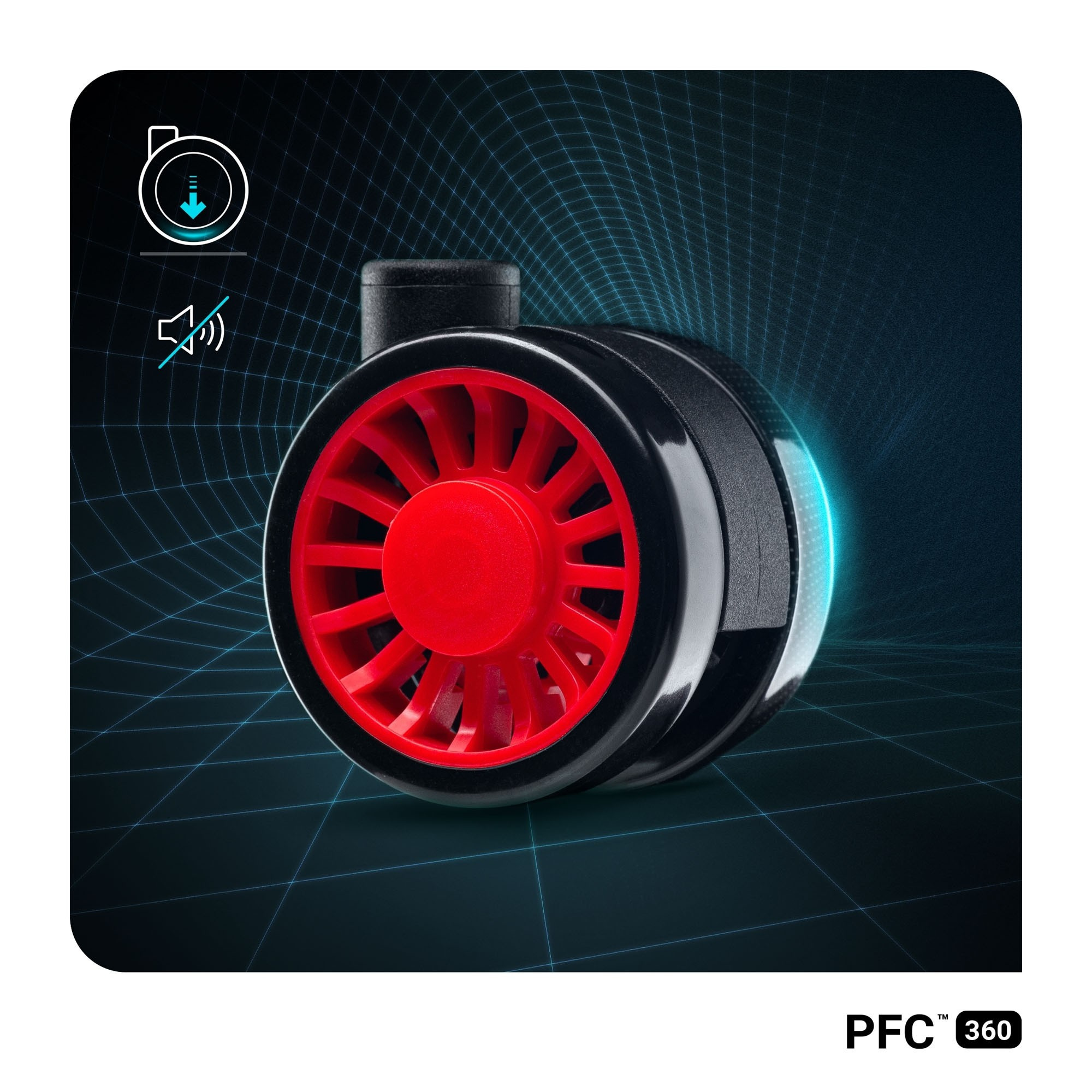 Kolečka PFC™ 360 jsou vybavena ráfky a jejich průměr je 65 mm. Zajišťují křeslu plnou mobilitu a jejich kaučukový povlak ochrání podlahu před vznikem škrábanců.