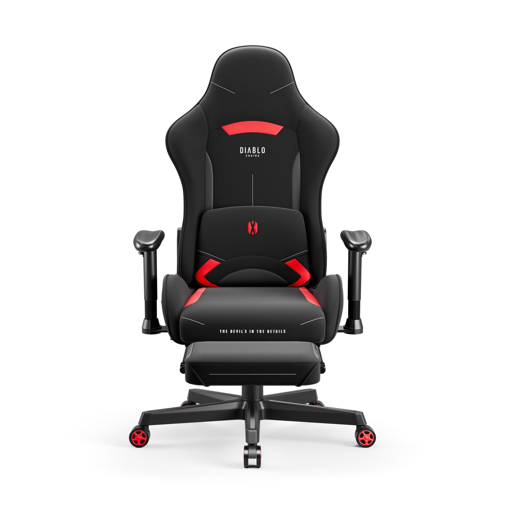 Herní křeslo černo-červené Diablo X-Starter Diablo X-Starter je moderní Herní křeslo vytvořené s ohledem na hráče, kteří očekávají nejen efektní design, ale také ergonomii a plnou podporu v každé situaci. Od první chvíle pocítíš rozdíl – komfort, který ti umožní plně se soustředit na hru a dosahovat dalších úrovní bez omezení. Vlastnosti otočné židle: Ergonomická podpora páteře Zesílená a pružná výplň pěnou HR a Comfort Layer™ Prodyšná tkanina SoftTouch™ Tichá a obratná kolečka s gumovým povrchem Pohodlné područky s nastavením Odolná základna s nosností do 140 kg Možnost rozšíření o bederní polštář a podnožku Židli Diablo X-Starter lze obohatit o speciální podnožku a bederní polštář. Herní příslušenství je třeba zakoupit samostatně.Herní křeslo černo-červené s profilovaným opěradlem Diablo Chairs je zárukou ergonomických řešení a výrazného designu. Není tomu jinak ani v případě látkového křesla, jehož intenzivní černá byla posílena dravými červenými vložkami. Černo-červený duet je návrh pro odvážné lidi, kteří se rádi odlišují. Dynamický tvar jako z závodního auta a tvarovaná opěrka zajišťují správnou podporu celé páteře. V modelu X-Starter zapomeneš na bolest!Křeslo má odolné čalounění s drápem Přemýšlíte, zda křeslo s látkovým potahem vydrží dlouhodobé a náročné používání? Černo-červený X-Starter si s úkolem určitě poradí! Tkanina SoftTouch™ je kombinací měkkosti a odolnosti proti oděru. Prodyšný materiál zajišťuje správnou ventilaci a pohodlí i v horku. A pružná pěna HR a vrstva Comfort Layer™ jsou mistrovskou výplní zaručující ještě pohodlnější oporu. Všechno pracuje ve tvůj prospěch!Funkce Tilttech™ – svoboda, kterou potřebujete Nezávislost v akci je něco, co nároční hráči mají nejraději. Proto jsme v herním otočném křesle použili řešení Tilttech™, která ti poskytují plnou kontrolu nad nastavením. Tilttech™ Butterfly Klíčem k ergonomickému držení těla u stolu je přizpůsobení výšky židle výšce postavy. Díky Tilttech™ Butterfly můžete zvedat a spouštět sedadlo podle svých vlastních preferencí. Tilttech™ Gear Zdravé držení těla neznamená, že musíte sedět před počítačem téměř v pozoru. Mechanismus Tilttech™ Gear umožňuje naklonit opěradlo až do 140° a zablokovat v zvolené poloze. Tilttech™ Swing Máš chuť na trochu pohybu, aniž bys musel vstávat z křesla? Jde to udělat! Systém Tilttech™ Swing umožňuje uvolňující a bezpečné houpání bez ztráty podpory páteře. Regulovatelné područky – plná podpora pro paže Dobrý Herní křeslo pro dospělého hráče nemůže opomenout profesionální podporu pro lokty a předloktí. To je vhodný úkol pro regulované područky Armtech™ Crossover SoftTouch! Možnost úpravy područek ve dvou rovinách (nahoru-dolů a doprava-doleva) je zárukou pohodlí a stabilizace ramen a paží. A to znamená jedno – žádné napjaté a bolestivé svaly.Ergonomická herní židle s pevnou základnou a plynulým pohybem. Poutavé online hraní? Úkol v práci, který tě zcela pohltí? Ve herním křesle X-Starter nemusíš omezovat své pohyby. Silná základna s podnožníkem a maximální nosností do 140 kg ti poskytuje ochranu před pádem i při náhlých trhnutích. Tvým spojencem jsou také otočná a tiše fungující kolečka s kaučukovým povrchem. Usnadňují pohyb po každém povrchu a nezanechávají stopy na podlaze. Bederní polštář a podnožka – doplňte látkové křeslo ergonomickými doplňky. Chcete, aby vaše černo-červené Herní křeslo bylo ještě více přizpůsobeno vašim potřebám? Dokup k němu bederní polštář a podnožku. Polštář perfektně podpoří dolní část páteře a podnožka umožní natáhnout nohy do pohodlné polohy. Z polštáře a podnožky můžeš využívat, kdy chceš – nemusíš je mít stále namontované na křesle.