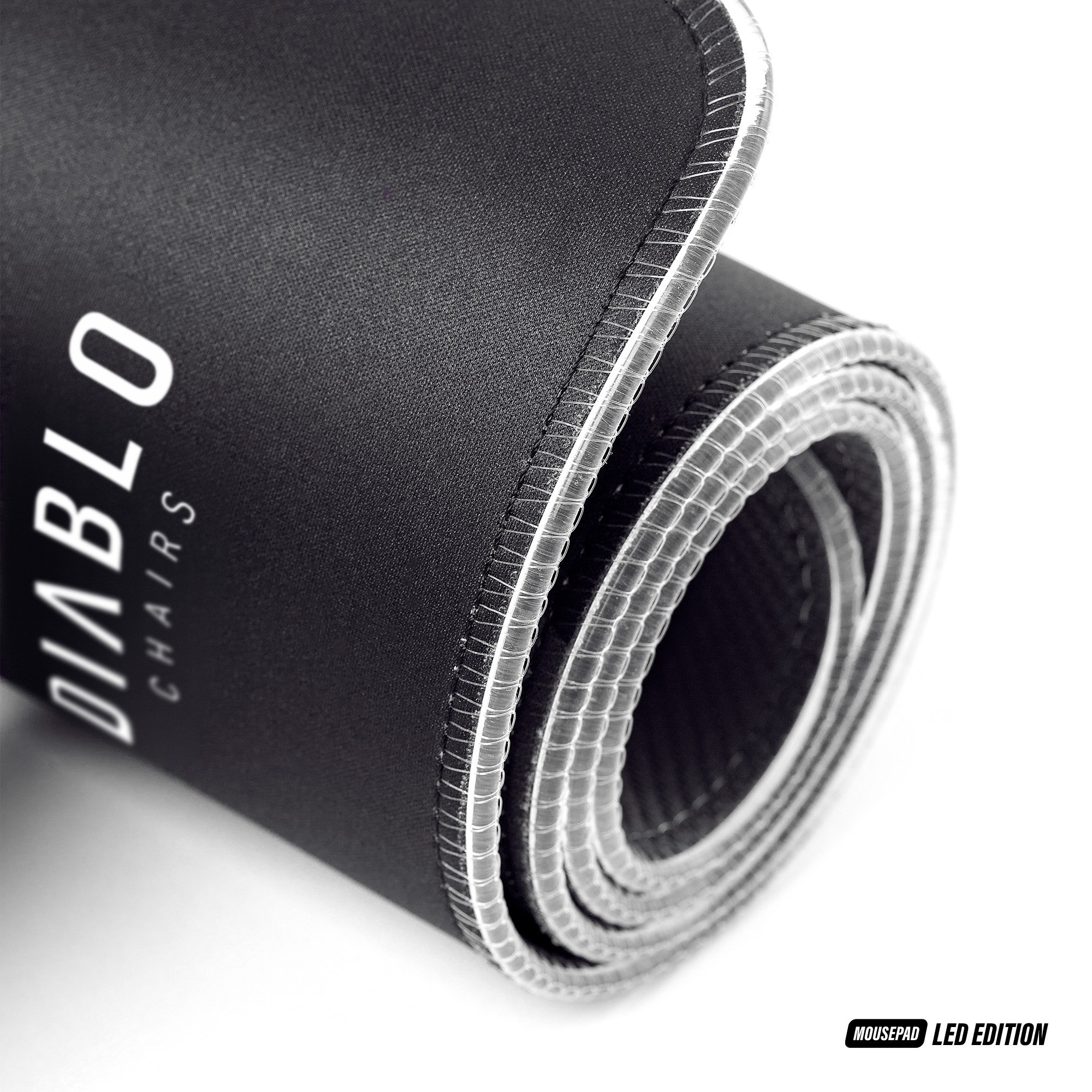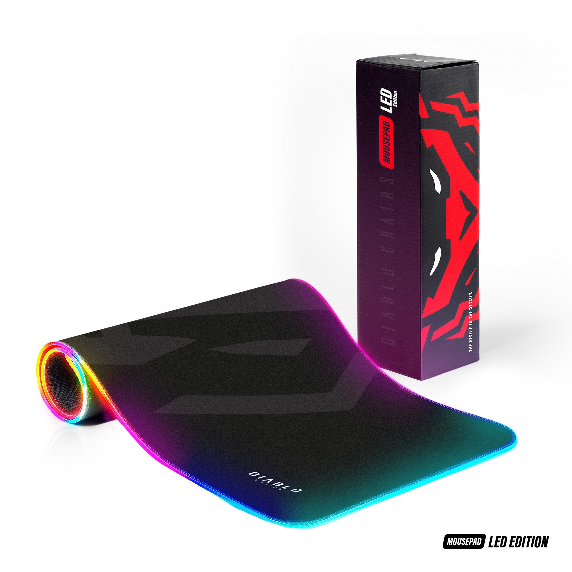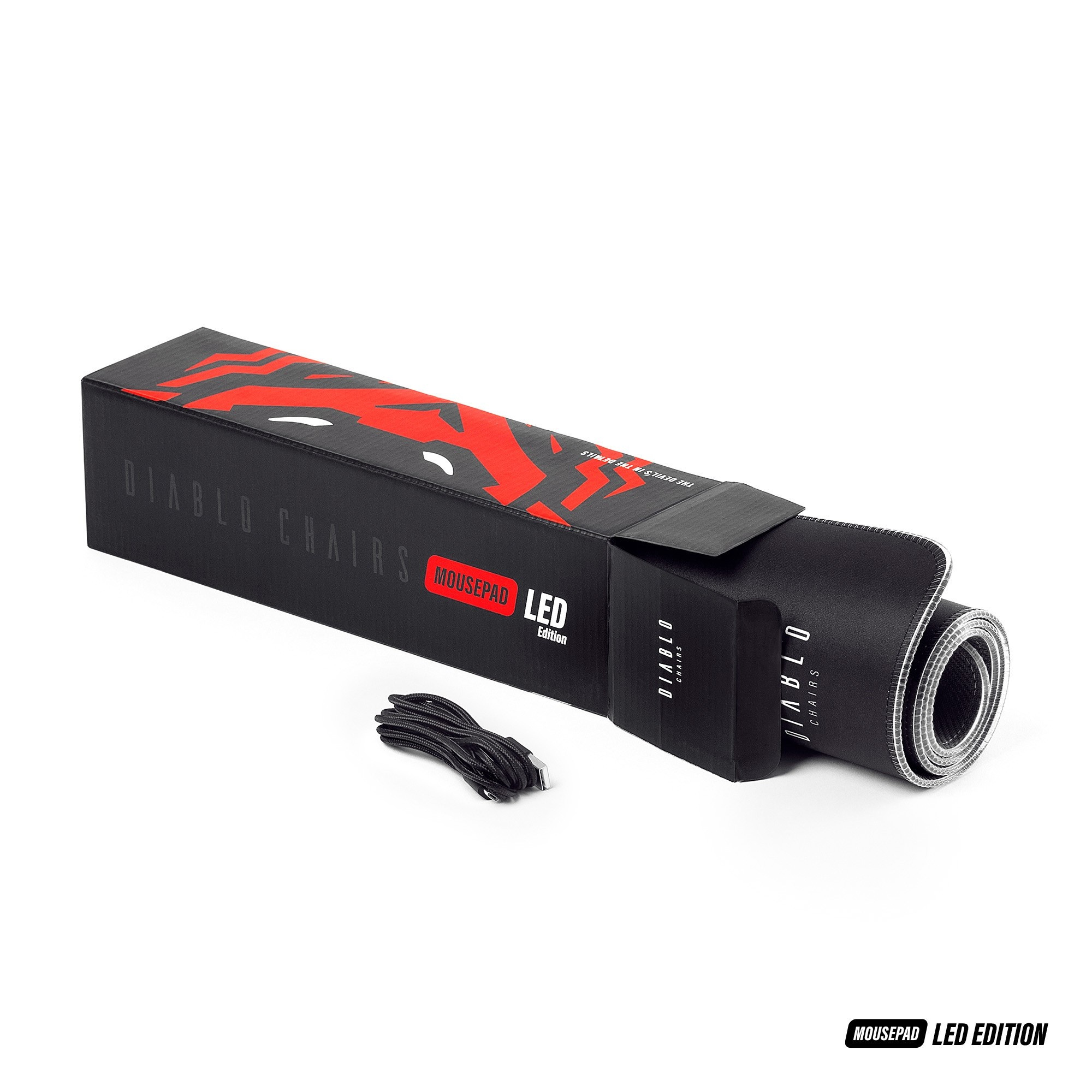 HERNÍ PODLOŽKA DIABLO CHAIRS LED EDITION Přizpůsob si svůj herní setup! Udělej z počítačového pracoviště ještě výraznější místo a každou hru plnou dodatečných emocí. S herní podložkou Diablo Chairs LED Edition se stůl promění v opravdové řídící centrum a procházení dalších virtuálních vesmírů bude vzrušující a jedinečné jako nikdy předtím. VÝHODY LED PODLOŽKY Jak to funguje? Naše herní podložka má až deset režimů, včetně sedmi statických a tří dynamických, a také sedm barev podsvícení: červená, zelená, modrá, fialová, indigo, žlutá a bílá. Můžeš si vybrat svůj oblíbený režim podsvícení a užívat si individuálně přizpůsobené herní stanoviště ve výrazném stylu! Design Diablo to není vše, protože naše herní podložka pod myš s LED osvětlením ti také zajistí maximální pohodlí během každodenního hraní. Hladký povrch zajistí, že myš se bude pohybovat plynule, a protiskluzová spodní strana zabrání nechtěnému posouvání podložky po povrchu herního stolu. Zaručené pohodlí! Specifikace herní podložky LED Rozměry: 80x30 cm Tloušťka: 0,4 cm Hmotnost: 0,56 kg Délka USB kabelu: 1,5 m Materiál: tkanina, guma Délka/typ napájecího kabelu: 1,5 m / micro USB Napájecí napětí: 5 V Spotřeba proudu: 150 mA
