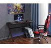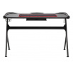 ROZMĚRY: - hloubka: 60 cm - šířka: 120 cm - výška: 76 cm MATERIÁL: - deska: laminovaná deska pokrytá uhlíkovým vláknem - rám: kov lakovaný práškovou barvou BARVA: - černá s červenými vložkami OSTATNÍ: - LED ovládané dálkovým ovladačem - kovový držák na hrnek - kovové háčky (např. na sluchátka) - USB HUB - vstup na kabely