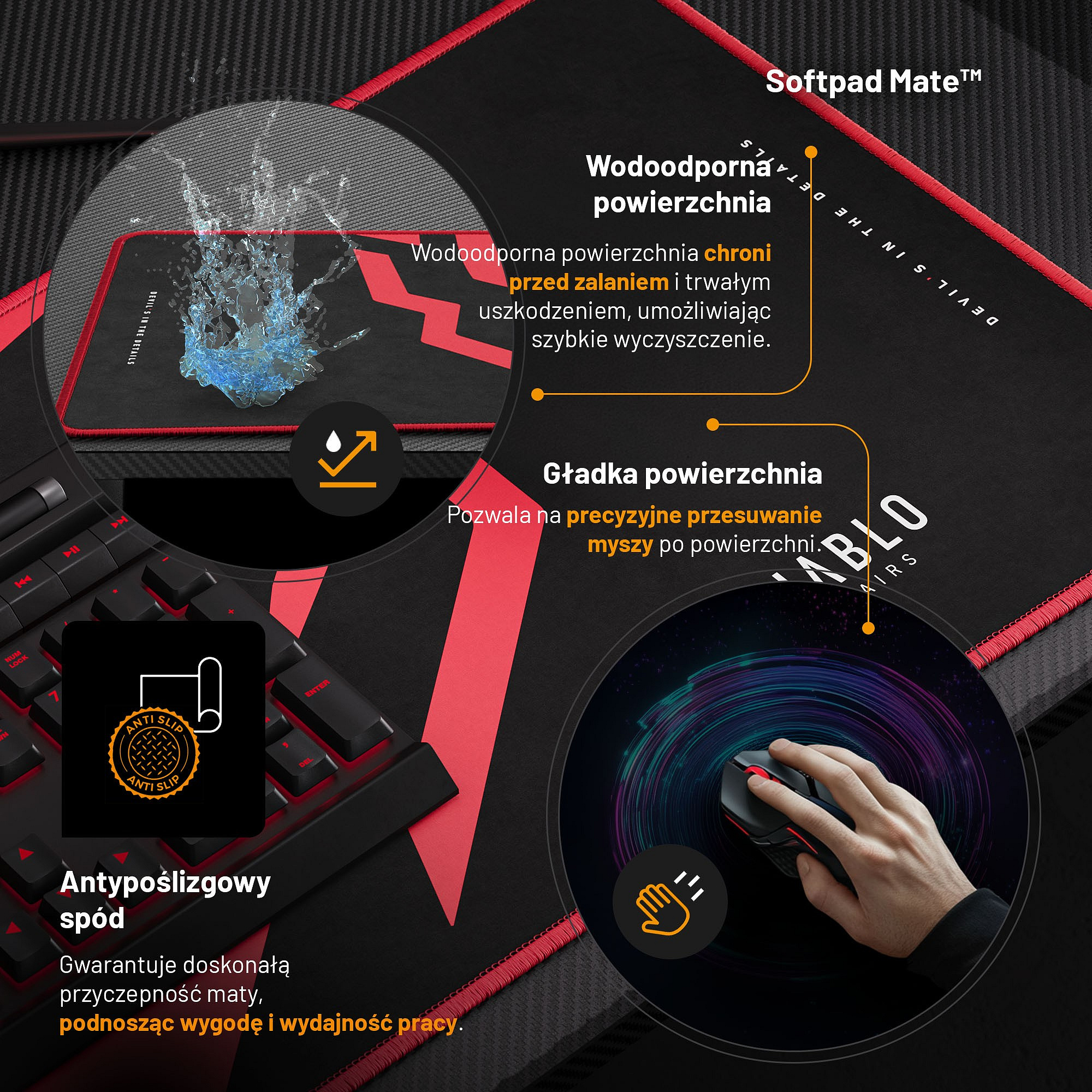 Podložka chrání desku stolu, umožňuje volný pohyb myši a díky rozpoznatelnému logu dodá vašemu hernímu setupu ten správný dravý charakter.