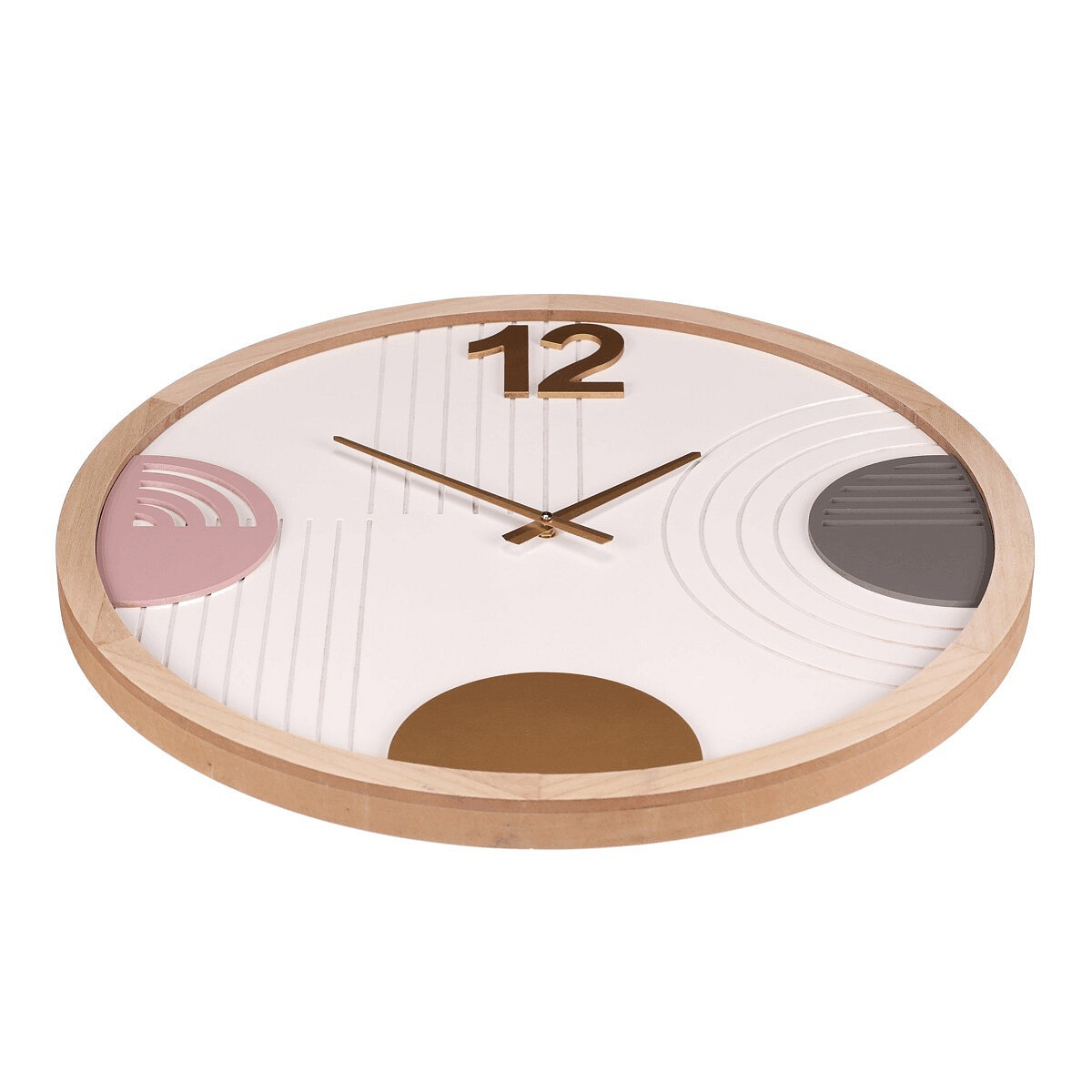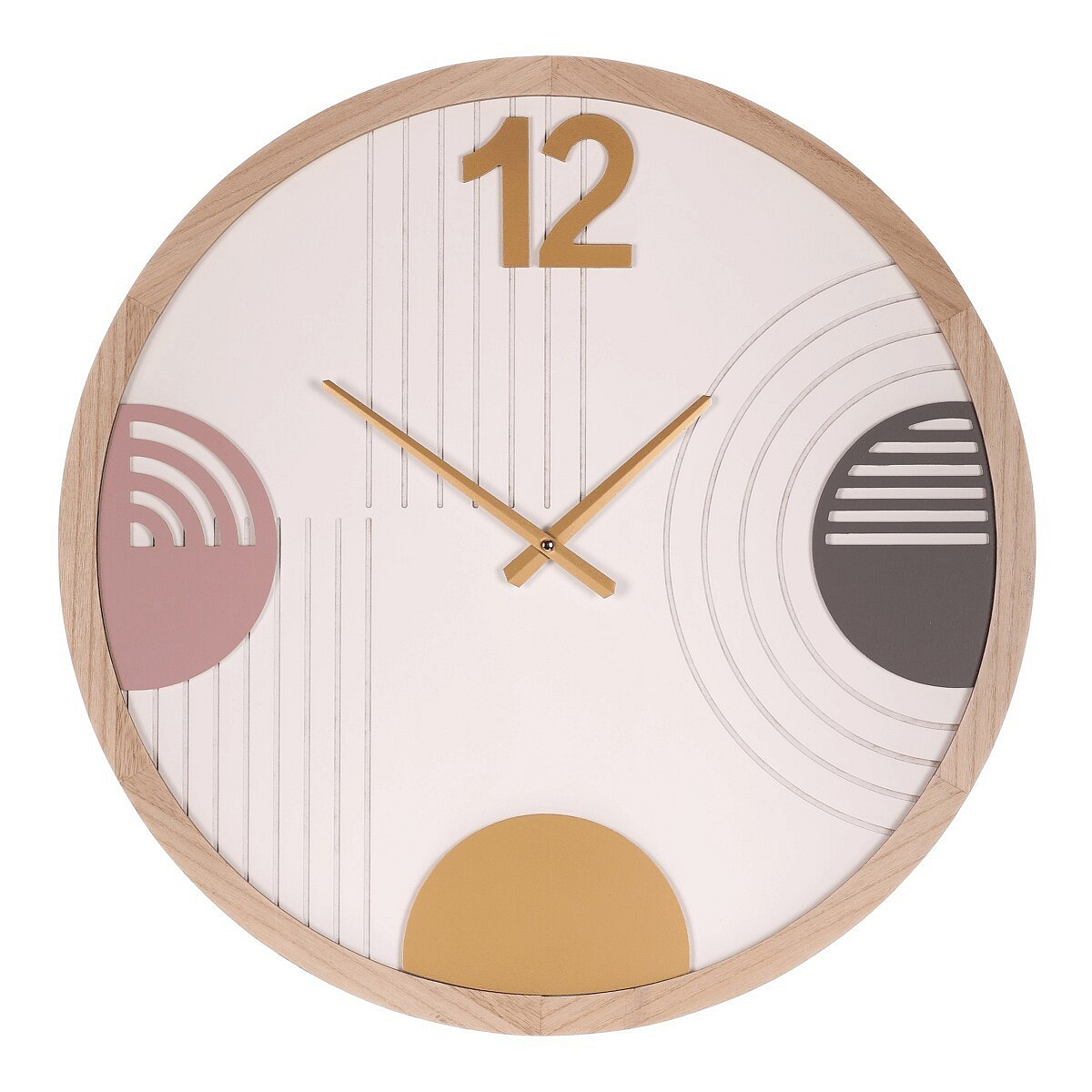 Tyto nástěnné hodiny s průměrem 60 cm přinášejí do vašeho prostoru čistý a moderní vzhled. Bílý ciferník je minimalistický, s jediným číslem 12 a bez dalších cifer, zatímco abstraktní kruhové zdobení dodává sofistikovaný nádech. Vyrobené z MDF desky a s hnědým dřevěným rámem, tyto hodiny spojují jednoduchost s elegancí, což z nich činí perfektní doplněk pro každou místnost, kde chcete mít nejen přehled o čase, ale i stylovou dekoraci.