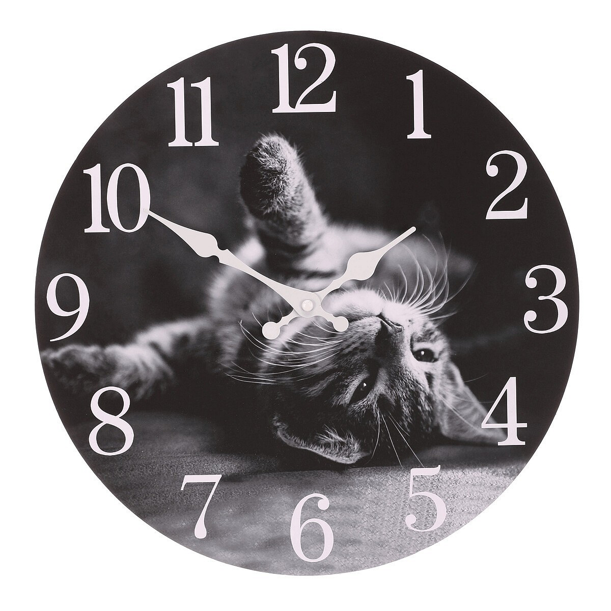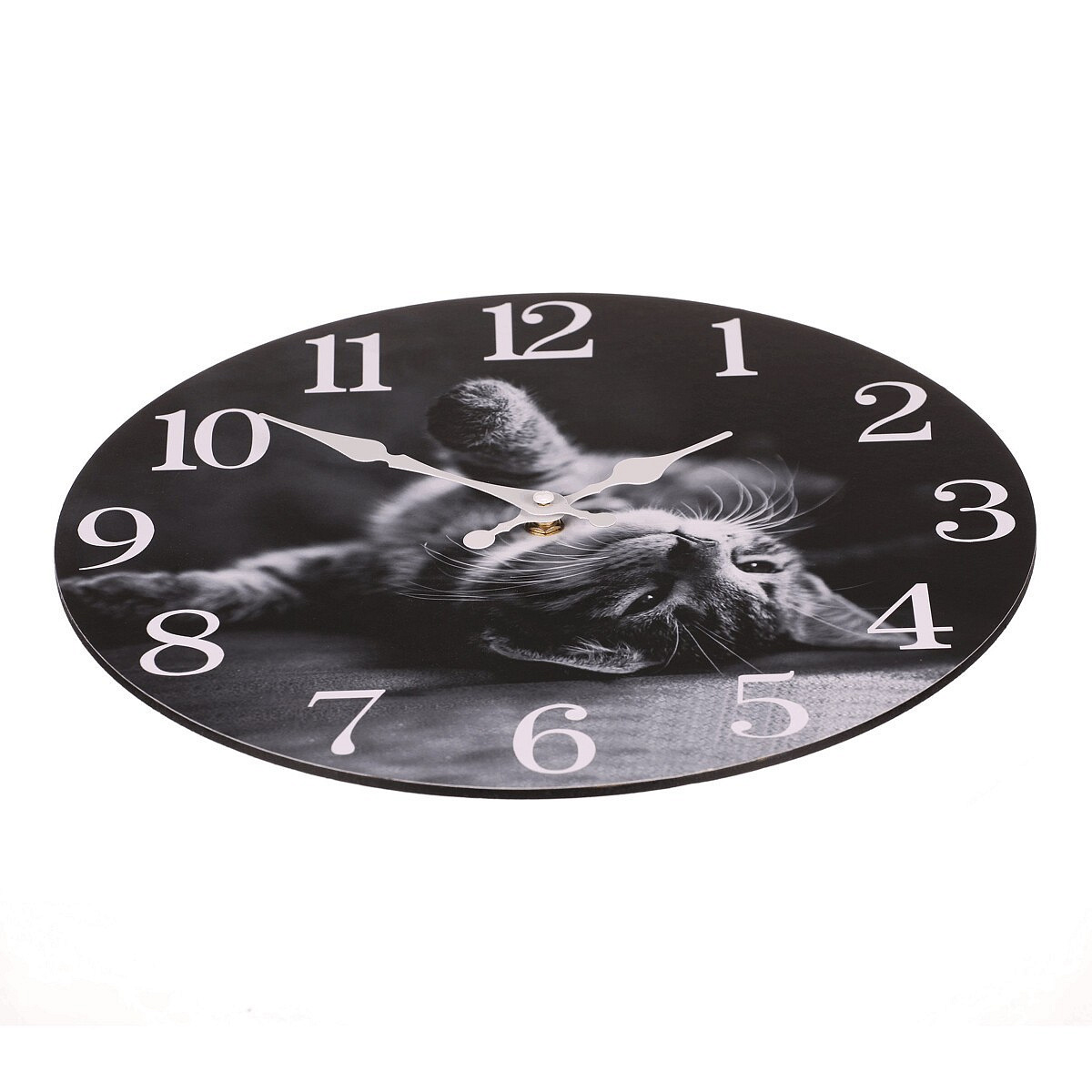 Tyto nástěnné hodiny s hravým koťátkem ležícím na zádech přinášejí do vašeho prostoru radost a lehkost. Vyrobené z MDF desky, mají bílé arabské číslice na tmavě šedém až černém pozadí, což vytváří moderní a elegantní vzhled. Roztomilé kotě zaručeně vykouzlí úsměv na tváři každého, kdo se podívá na čas, a přidá do vašeho interiéru nádech hravosti a pozitivní energie.