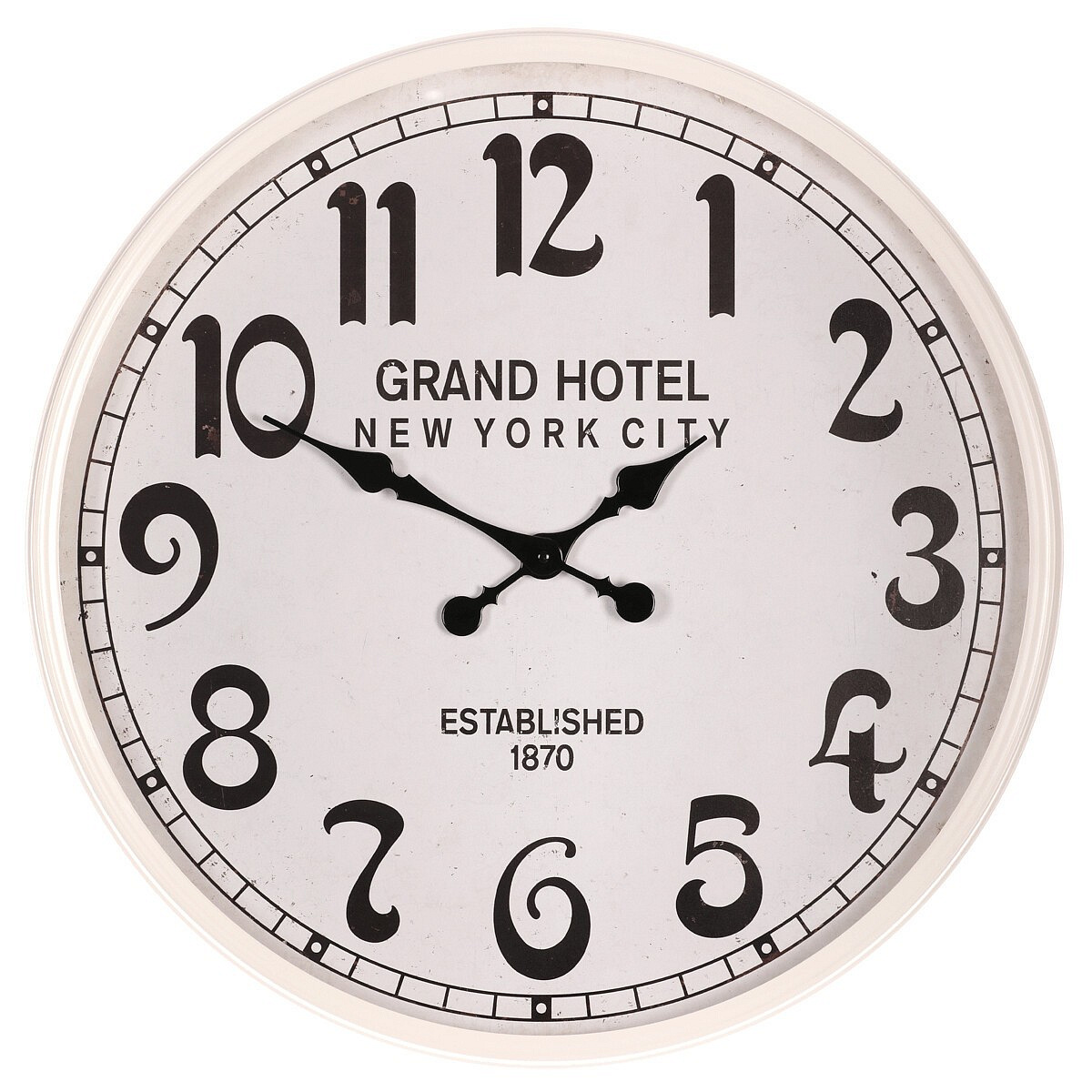 Hodiny nástěnné - pr. 60 cm, kov s patinou, bílé, grand hotel
