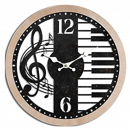Hodiny nástěnné - pr. 60 cm, MDF a kov, houslový klíč a klávesy