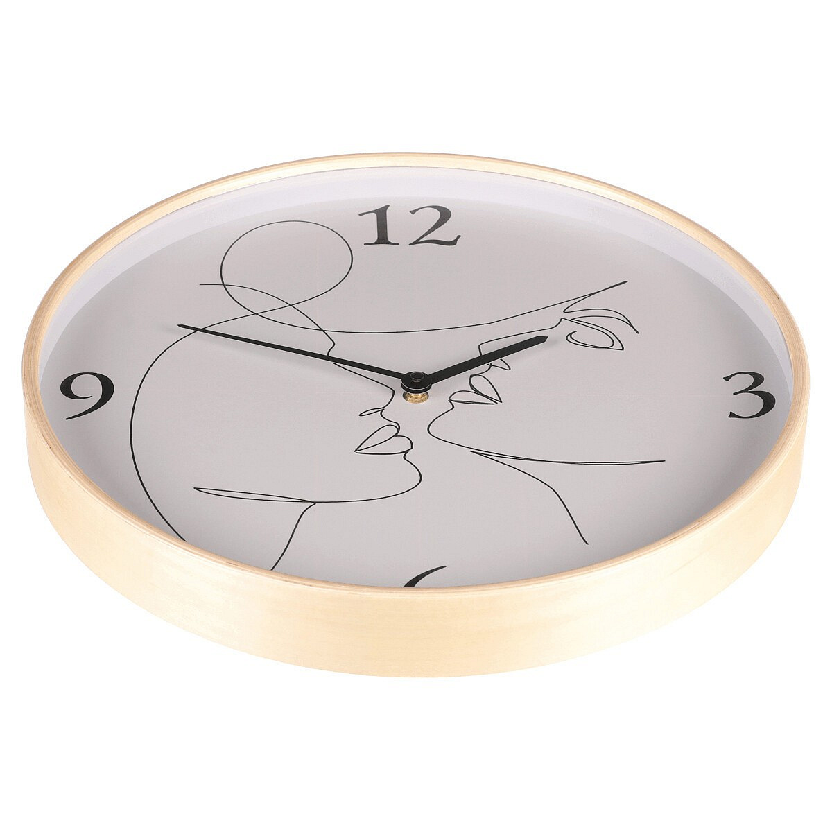 Hodiny nástěnné - pr. 40 cm, MDF a dřevěný rám, motiv tváří