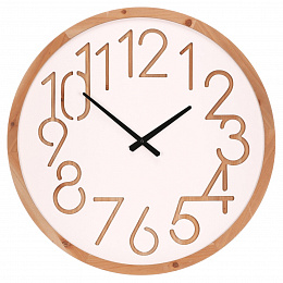 Nástěnné hodiny s průměrem 60 cm kombinují bílý ciferník z MDF s rámem z přírodního dřeva, který dodává celku teplý a přirozený vzhled. Číslice jsou vyřezány přímo do ciferníku, což vytváří zajímavý prostorový efekt a zároveň zajišťuje dobrou čitelnost. Černé ručičky kontrastují s bílým pozadím a umožňují snadné odečítání času. Hodiny jsou vhodné pro zavěšení v obývacím pokoji, kuchyni nebo kanceláři, kde doplní interiér o jednoduchý a funkční prvek. Díky použitým materiálům se snadno udržují a jsou navrženy pro dlouhou životnost.