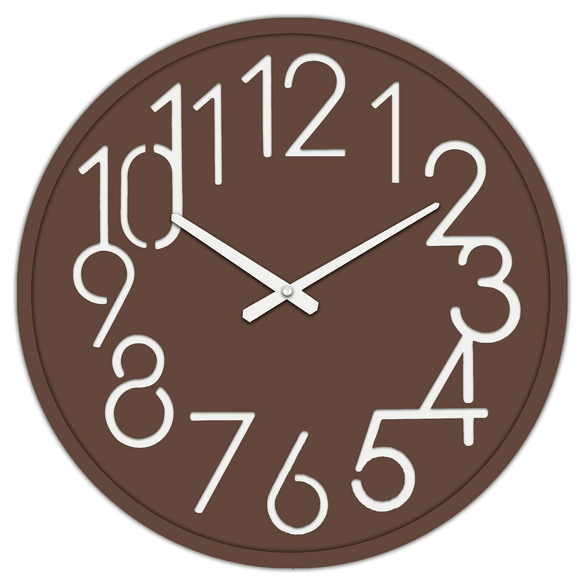 Nástěnné hodiny o průměru 60 cm jsou vyrobené z MDF desky v hnědém odstínu, který dodává interiéru teplý a příjemný vzhled. Číselník je tvořen výraznými bílými číslicemi v moderním designu, které jsou snadno čitelné i z větší vzdálenosti. Hodiny mají jednoduché a čisté ručičky ladící s celkovým stylem, což zajišťuje přehlednost a funkčnost. Díky kvalitnímu materiálu se snadno udržují a jsou vhodné pro různé typy interiérů, kde doplní atmosféru přírodními tóny.