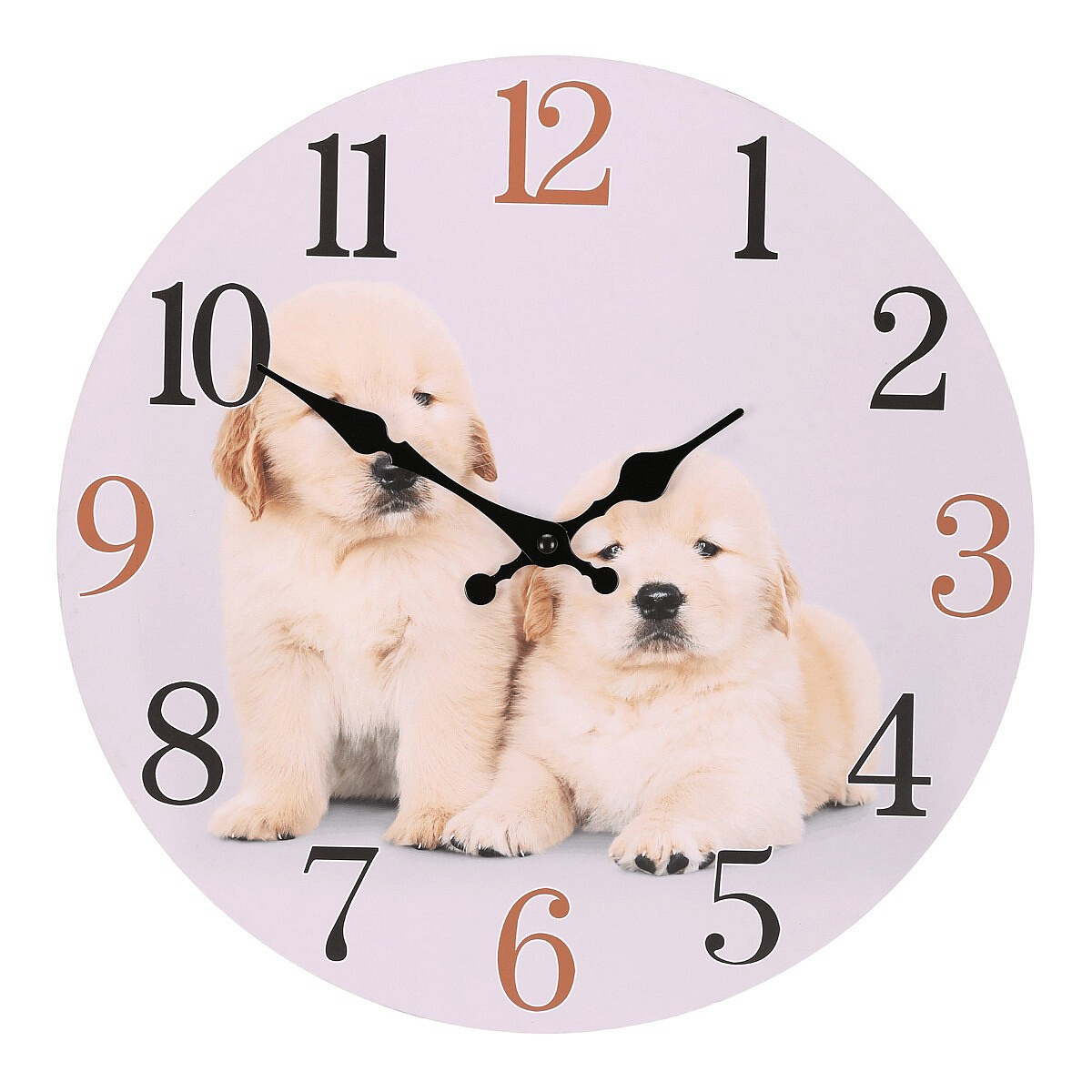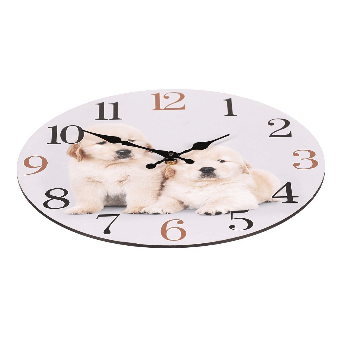 Hodiny nástěnné - pr. 34 cm, MDF, motiv štěňat