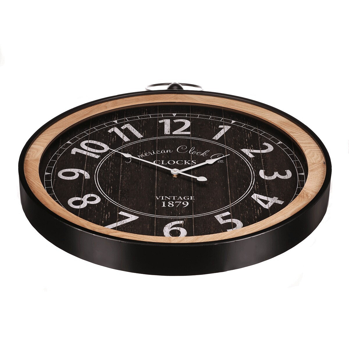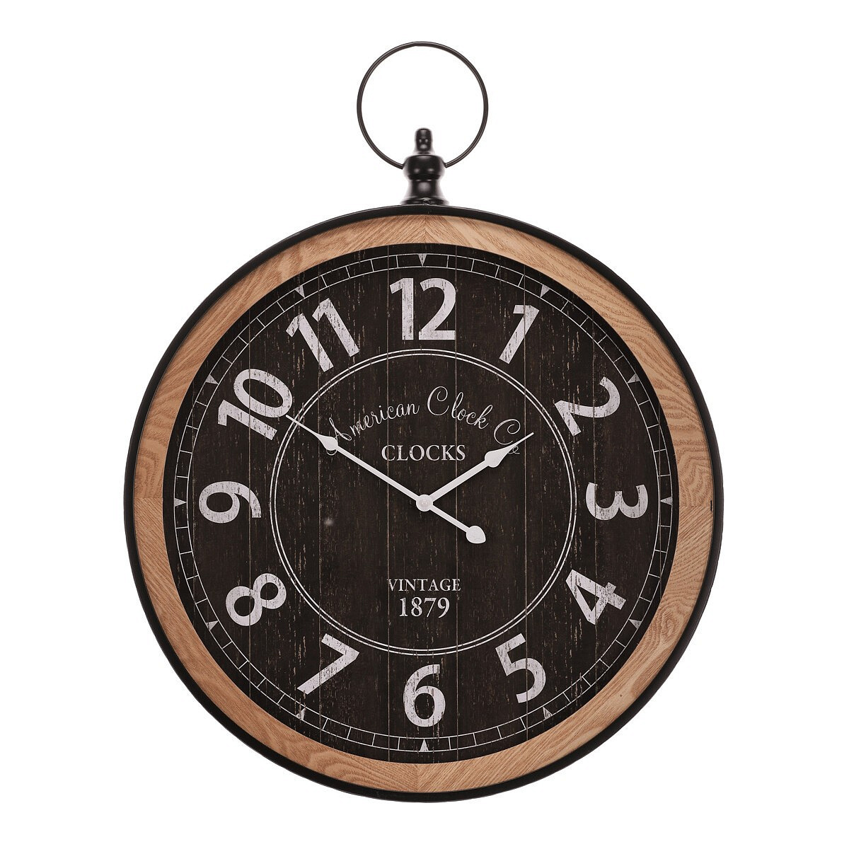 Hodiny nástěnné - pr. 58 cm, kov a dřevo, styl kapesních hodinek
