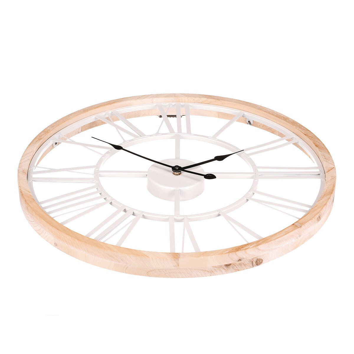 Hodiny nástěnné - pr. 50 cm, kov a dřevěný rám, bílé římské číslice