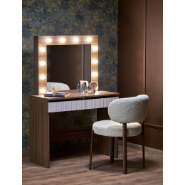 toaletní stolek, rozměry: 94/43/140 cm, materiál: zrcadlo / laminovaná nábytková deska / laminovaný MDF, LED osvětlení, barva: kašmír / ořech