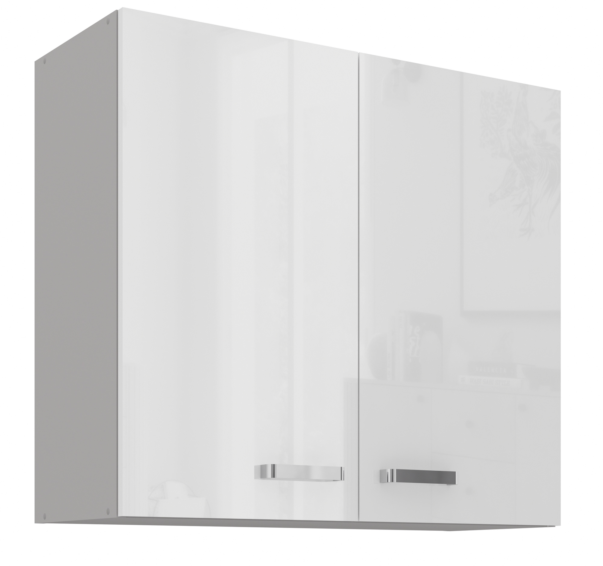 Horní skřínka BIANCA - 80 G-72 2F, Šedá / Bílý lesk