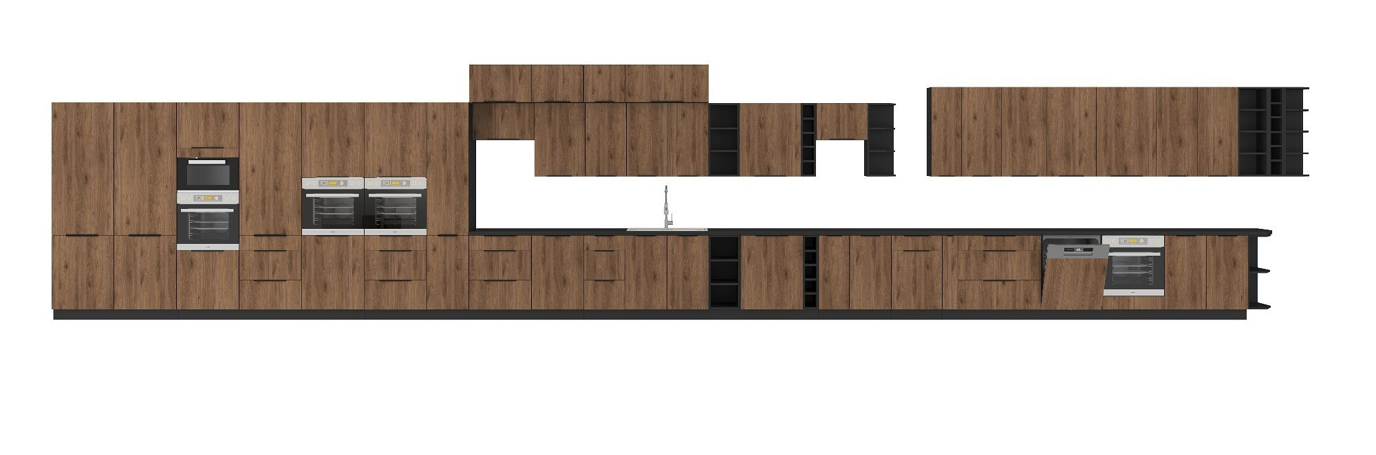 - Dvířka a čela šuplíků jsou vyrobeny z LTD desky výšky 16 mm v barvě ořech