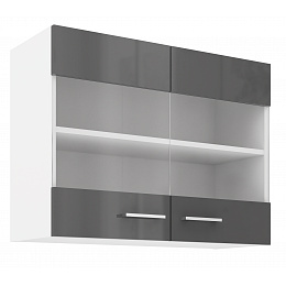 Horní skříňka SOLA - 80 GS-60 2F, Bílá/Šedý Lesk