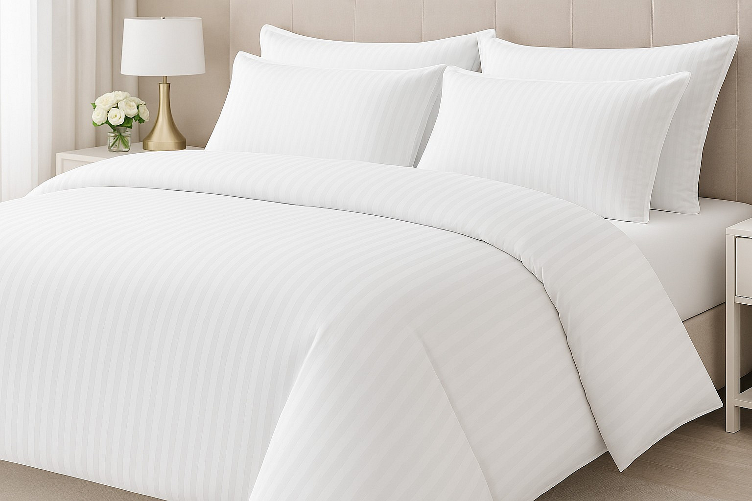 Hotelové povlečení 140x220, 70x90cm Atlas gradl Bílý - česaný 145g/m2, proužek 2cm zipový uzávěr