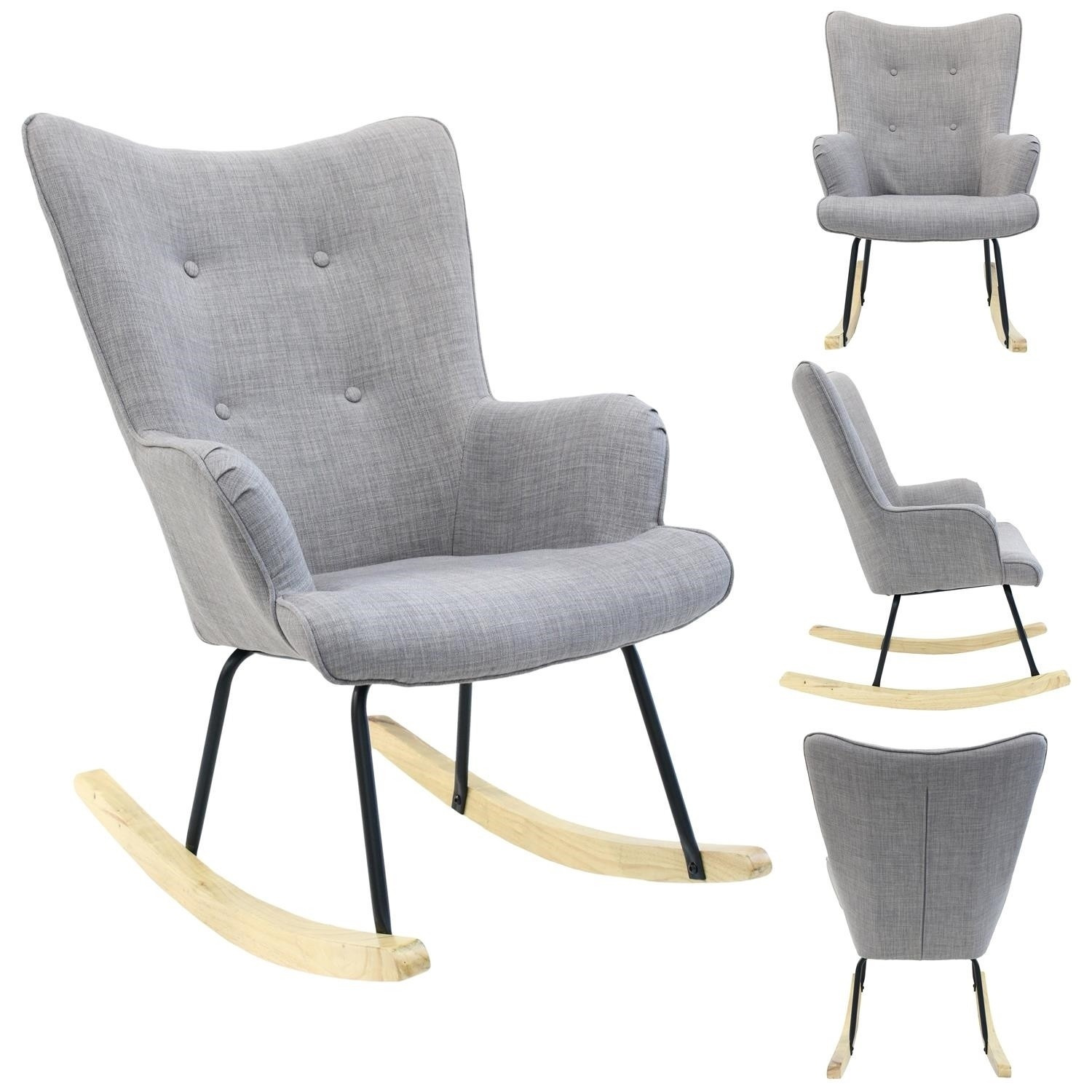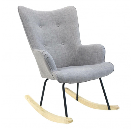 Pohodlné, houpací křeslo ušák v šedé látce je nábytek jak pro klidný odpočinek, tak pro čtení knih nebo kojení. Křeslo s nízkým sedákem a hlubokým opěradlem zaručuje klid a pohodlí. Křeslo na kovových nožkách s dřevěnými ližinami v přírodní barvě se dokonale hodí do interiérů v moderním, boho, japandi i skandinávském stylu. Ozdobná, šedá tkanina vyrobená ze 100% polyesteru byla ozdobena knoflíky. Křeslo váží 8,59 kg. Max. zatížení křesla 110 kg. Vyžaduje snadnou montáž. Nestohuje se. Není vhodné pro venkovní použití. Tloušťka pěny na sedáku 24 kg/m3. Tloušťka pěny na opěradle: 24kg/m3