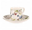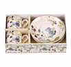 Hrneček s podšálky po 2 kusech - dárkový set, porcelán, bílý s lesními plody