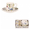Udělejte radost druhým, nebo i sami sobě, darováním nádherně malovaného setu dvou hrnků s podšálky z porcelánu v dárkové krabičce. S pestrobarevným motivem lesních plodů na bílém pozadí, se budou na jakékoli poličce skutečně vymykat. Krabička samotná i obsah v ní má totožný ozdobný motiv, na který je radost se dívat.
