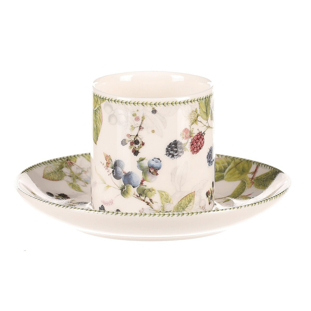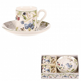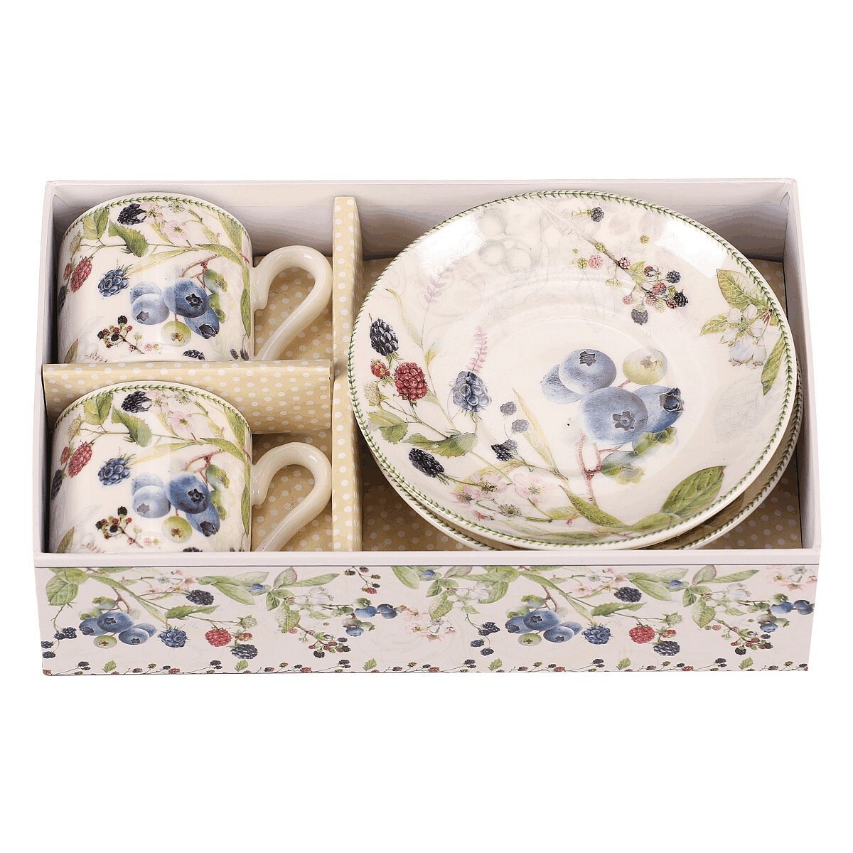 Hrneček s podšálky po 2 kusech - dárkový set, porcelán, bílý s lesními plody