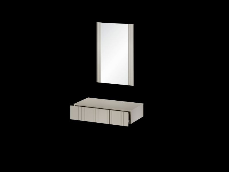 ISLA toaletka rozměry: V/Š/H - zrcadlo: 79cm/53cm; zásuvka 10cm/71cm/28,5cm materiál: korpus: laminovaná deska 16mm čela: MDF deska o tloušťce 16mm s viditelnými frézami Úchyt: systém PUSH TO OPEN