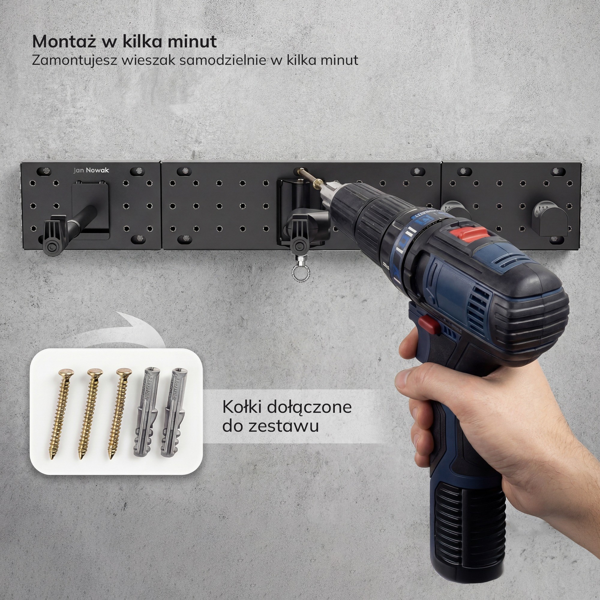 - Snadná montáž: Držák se snadno montuje na stěnu pomocí přiložených šroubů a hmoždinek. Montáž zvládne každý kutil.
